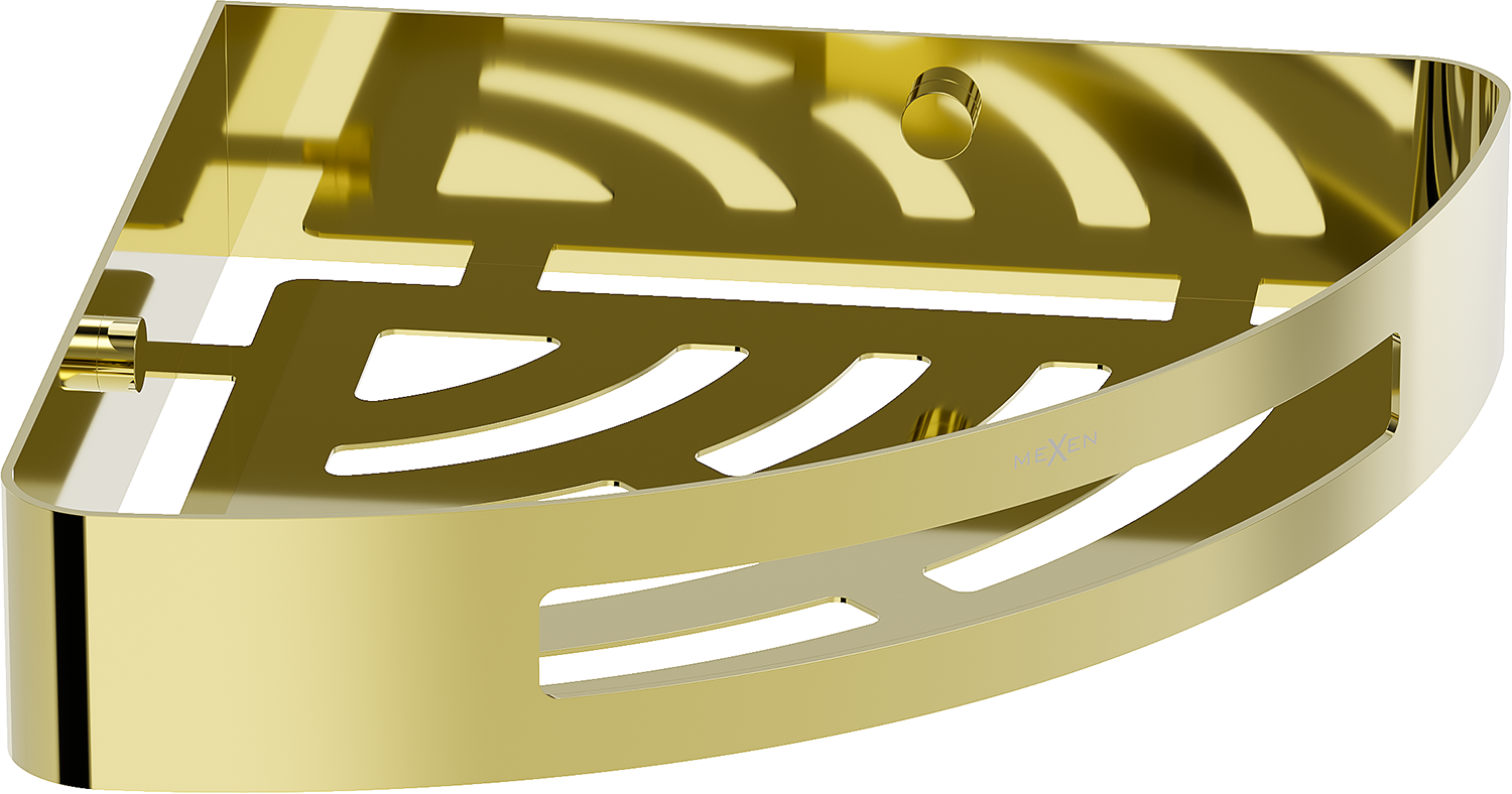 A Mexen Laxo-C sarok fürdőszobai kosár tökéletes megoldás minden fürdőszobába. AISI 304 rozsdamentes acélból készült, biztosítva a tartósságot és ellenállást a korrózió és fakulás ellen. Arany felülete eleganciát ad a belső térnek. Szélessége 21 x 21 cm és magassága 4,5 cm, tökéletesen illeszkedik a sarokba, helyet takarítva meg. A polc lyukakkal van felszerelve, amelyek gyors vízelvezetést tesznek lehetővé, biztosítva a higiéniát és a hosszú távú használatot.