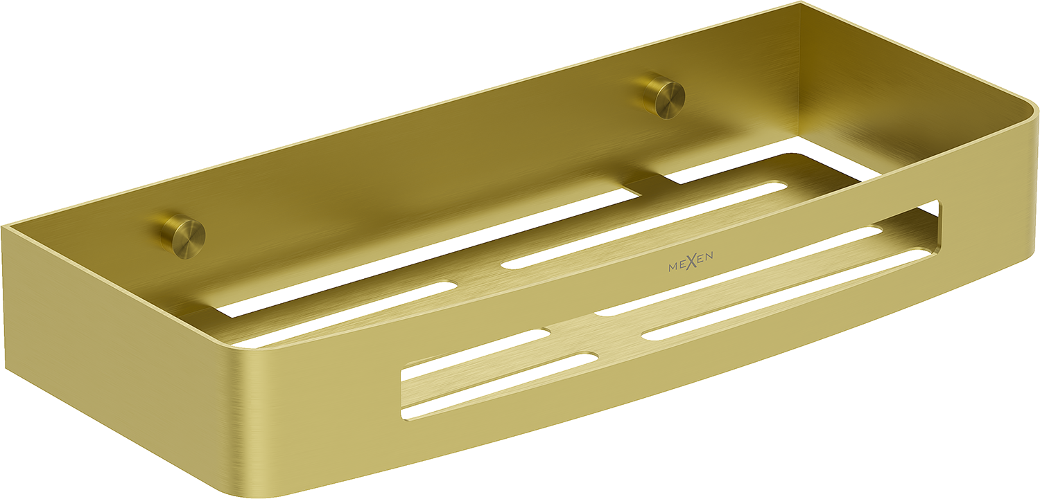 A Mexen Laxo-L fürdőszobai kosár elegáns és praktikus megoldás minden fürdőszobába. AISI 304 rozsdamentes acélból készült, tartósságot és mattulás valamint korrózió elleni védelmet garantál. Az arany szálcsiszolt felületkezelés luxust és stílust ad. A 30 cm széles, 4,5 cm magas és a faltól 13 cm távolságra elhelyezkedő kosár kiválóan alkalmas kisebb terekbe is. További lyukak lehetővé teszik a víz gyors elvezetését, ami növeli a funkcionalitását.