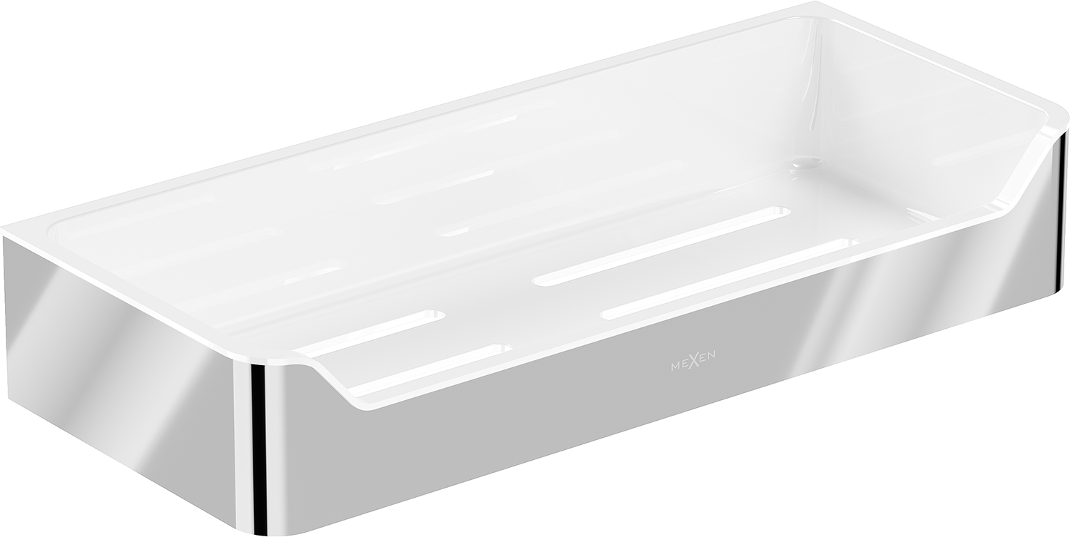 A Mexen Rivon-L fürdőszobai kosár, króm ideális megoldás mindenkinek, aki értékeli a stílust és a funkcionalitást a fürdőszobában. Kiváló minőségű AISI 304 rozsdamentes acélból és műanyagból készült, ami tartósságot és korrózióállóságot garantál. A krómozott befejezés eleganciát ad és véd a mattulás ellen. A 30,5 cm széles, 5,5 cm magas és 13 cm mély méreteknek köszönhetően a kosár kompakt, és a polc lyukakkal lehetővé teszi a gyors vízelvezetést, ami kényelmes használatot biztosít. Ez elengedhetetlen eleme minden modern fürdőszobának.