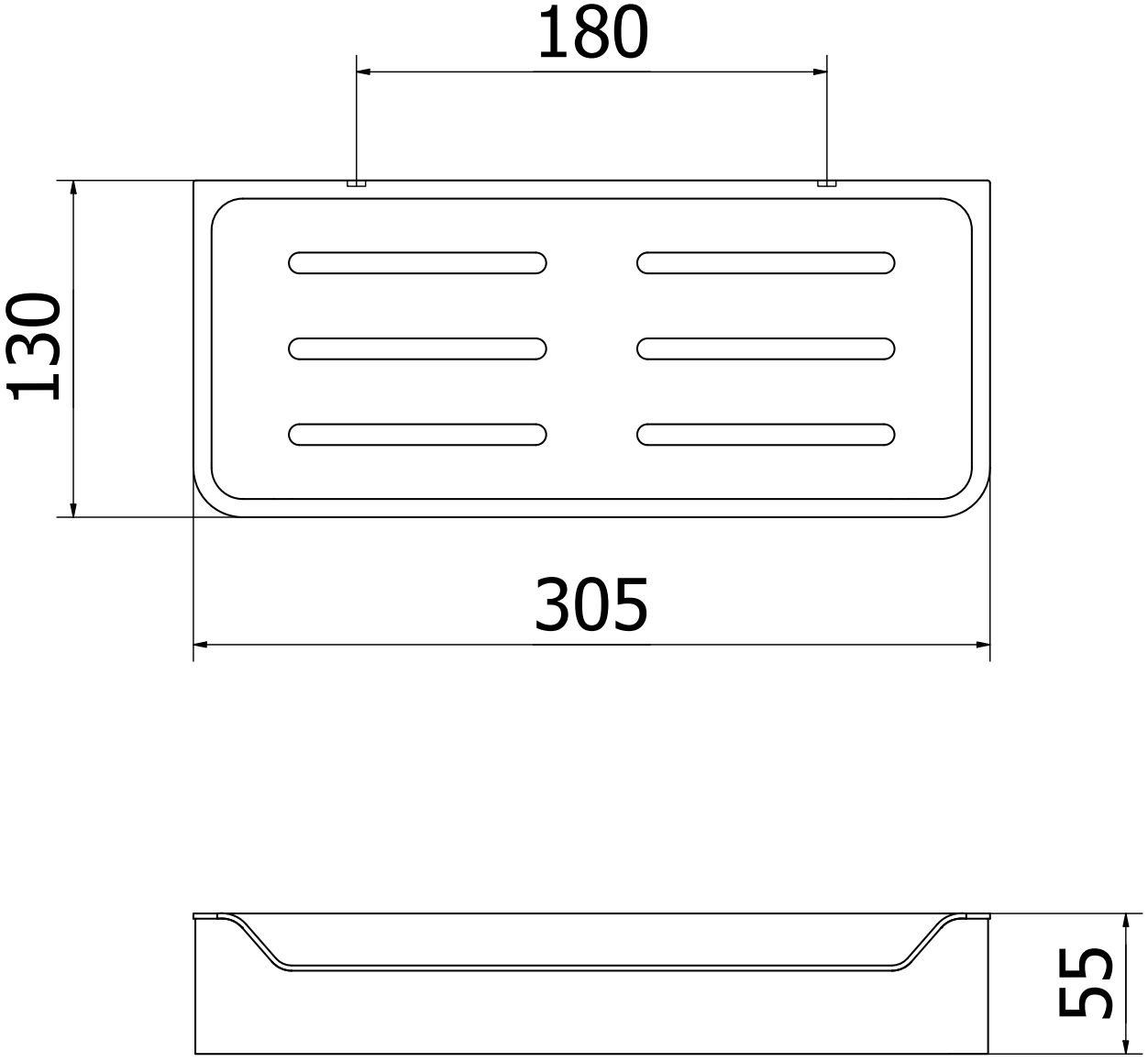 A polc lyukakkal rendelkezik, amelyek gyors vízelvezetést biztosítanak