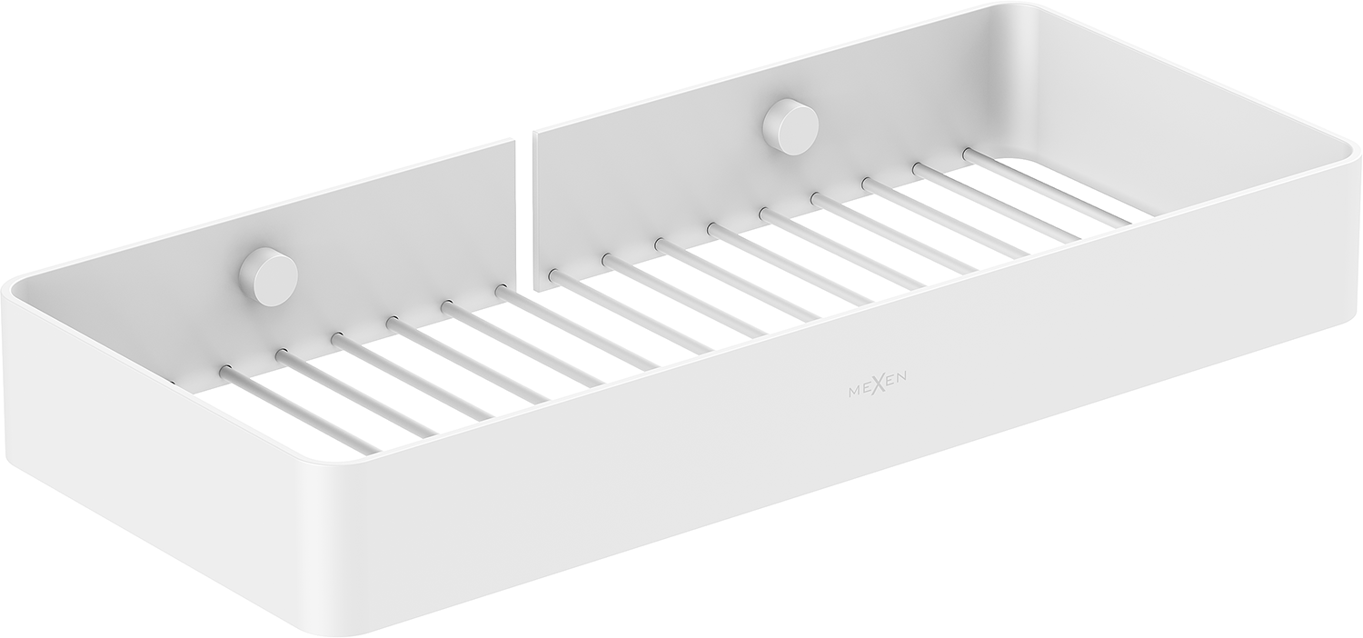 A Mexen Evos-L fürdőszobai kosár kiváló megoldás minden modern fürdőszobához. Magas minőségű AISI 304 rozsdamentes acélból készült, ami nemcsak tartós, hanem mattulás- és korrózióálló is, így garantálja a hosszú élettartamot. A stílusos fehér kivitel tökéletesen illeszkedik bármely belső térhez. A 29,5 cm széles és 4 cm magas kosár sok helyet kínál a kozmetikumok számára, a polc lyukai pedig biztosítják a víz gyors elvezetését, ami tisztaságot és higiéniát tart fenn. A faltól való 13 cm-es távolság gyakorlati használatot biztosít.
