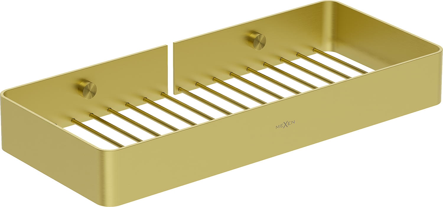 A Mexen Evos-L fürdőszobai kosár elegáns kiegészítő bármely fürdőszobához, magas minőségű rozsdamentes acél AISI 304-ből készült, amely hosszú távú ellenállást biztosít a mattulással és a korrózióval szemben. Az arany szálcsiszolt felület luxus stílust kölcsönöz. A kosár 29,5 cm széles, 4 cm magas és 13 cm távolságra van a faltól, így praktikus tárolást biztosít. A polc lyukakkal rendelkezik, amelyek lehetővé teszik a gyors vízelvezetést, ami növeli a funkcionalitást és a higiéniát. Ideális választás igényes felhasználók számára.
