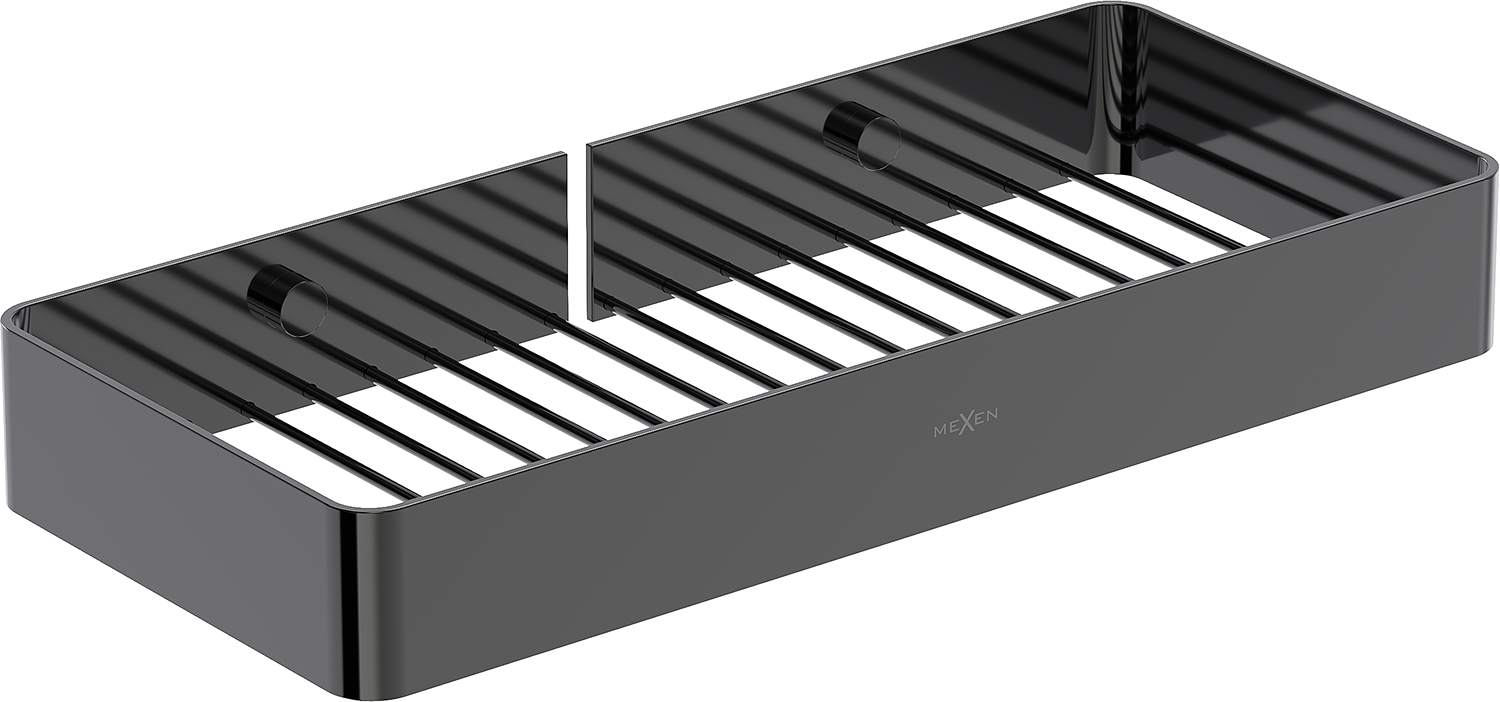A Mexen Evos-L fürdőszobai kosár elegáns fekete króm kivitelben rendkívül praktikus és stílusos megoldás a fürdőszobájába. Az AISI 304 kiváló minőségű rozsdamentes acélból készült kosár kivételes tartóssággal és mattulás, valamint korrózióval szembeni ellenállással rendelkezik. Méretei: 29,5 cm szélesség, 4 cm magasság, valamint faltól való távolsága 13 cm, így kisebb terekhez is ideális. A polcon lévő lyukak hatékony vízelvezetést biztosítanak, ami higiénét és rendet garantál.