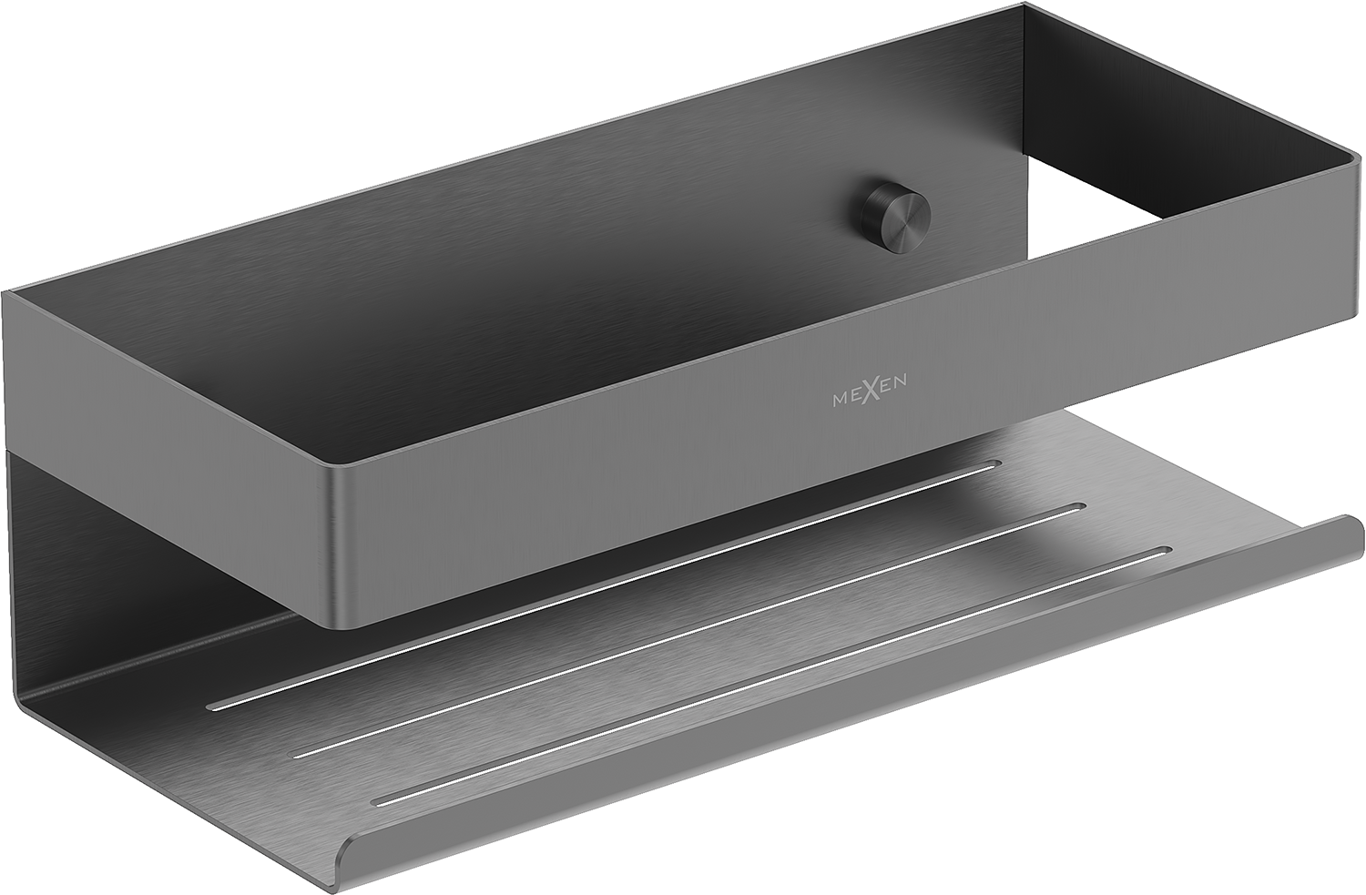 A Mexen Brin-L egy egyedülálló fürdőszobai kosár, amely kiemelkedik a modern gun gray kefevarat felülettel. Magas minőségű rozsdamentes acélból, AISI 304-ből készült, ami biztosítja a kitűnő ellenállást a mattulásnak és a korróziónak. Kompakt méretei: 23 cm szélesség, 8 cm magasság és 10 cm távolság a faltól biztosítják, hogy minden fürdőszobában remekül mutat. A lyukak gyors vizelvezetést tesznek lehetővé, így a Mexen Brin-L ötvözi a funkcionalitást az eleganciával.
