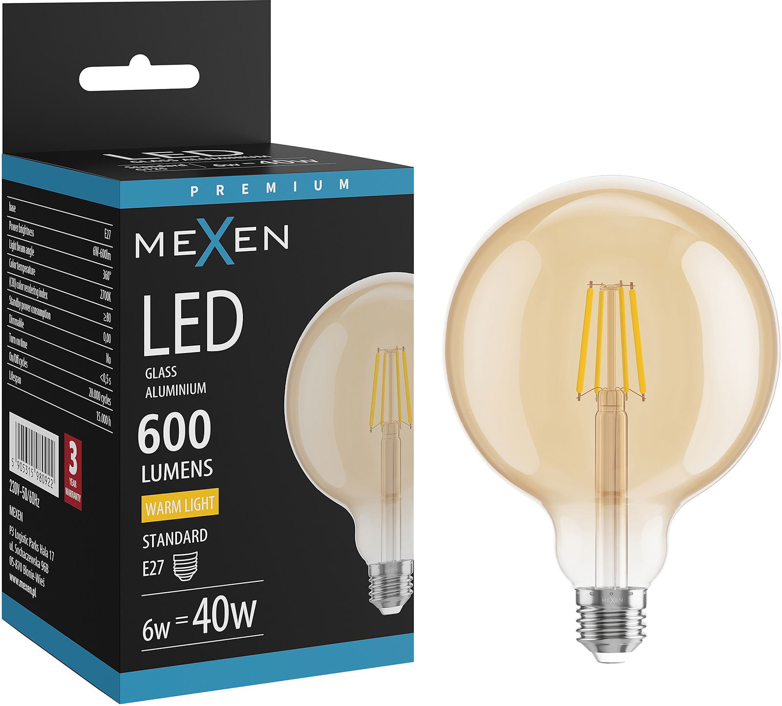 Mexen Vintis LED filament izzó E27, G125, 6W, Meleg - 2700K, 600 lm, borostyán - L158-E27-0627-50