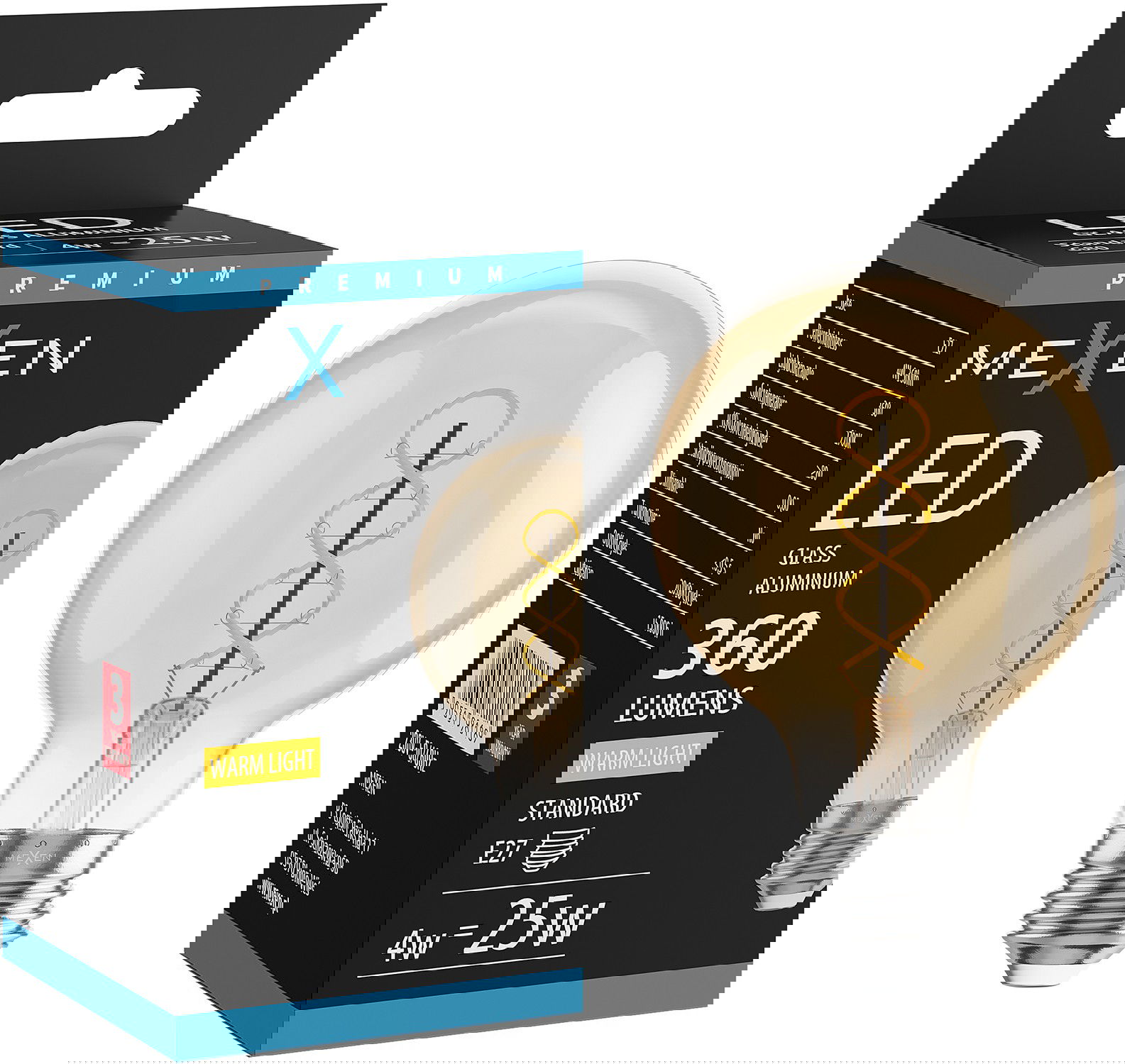 Mexen Vintis LED spirális filament izzó E27, G80, 4W, Meleg - 2700K, 360 lm, borostyán - L165-E27-0427-50