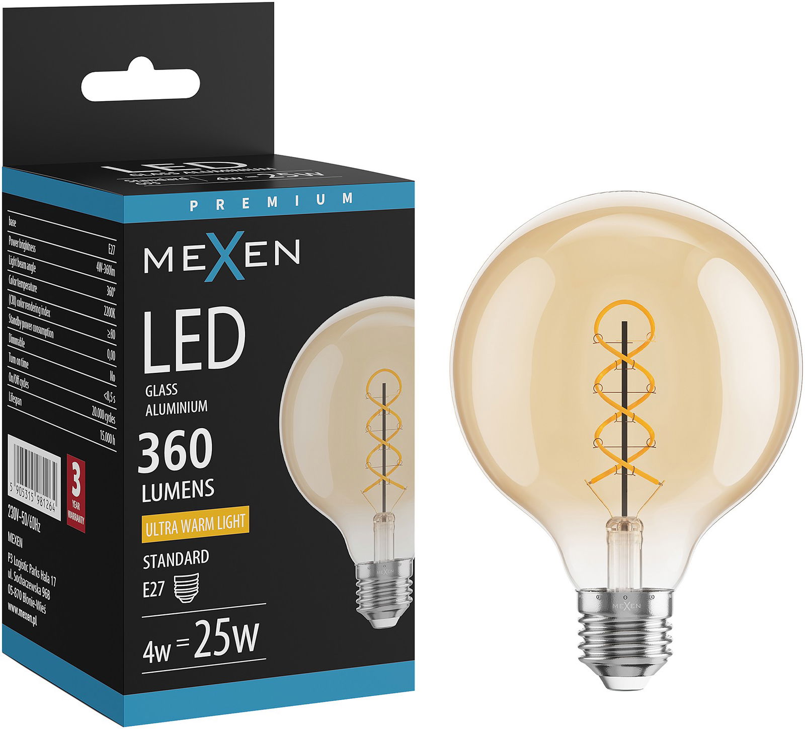 Mexen Vintis LED filamentszál spirál izzó E27, G95, 4W, Meleg - 2200K, 360 lm, borostyán - L167-E27-0422-50