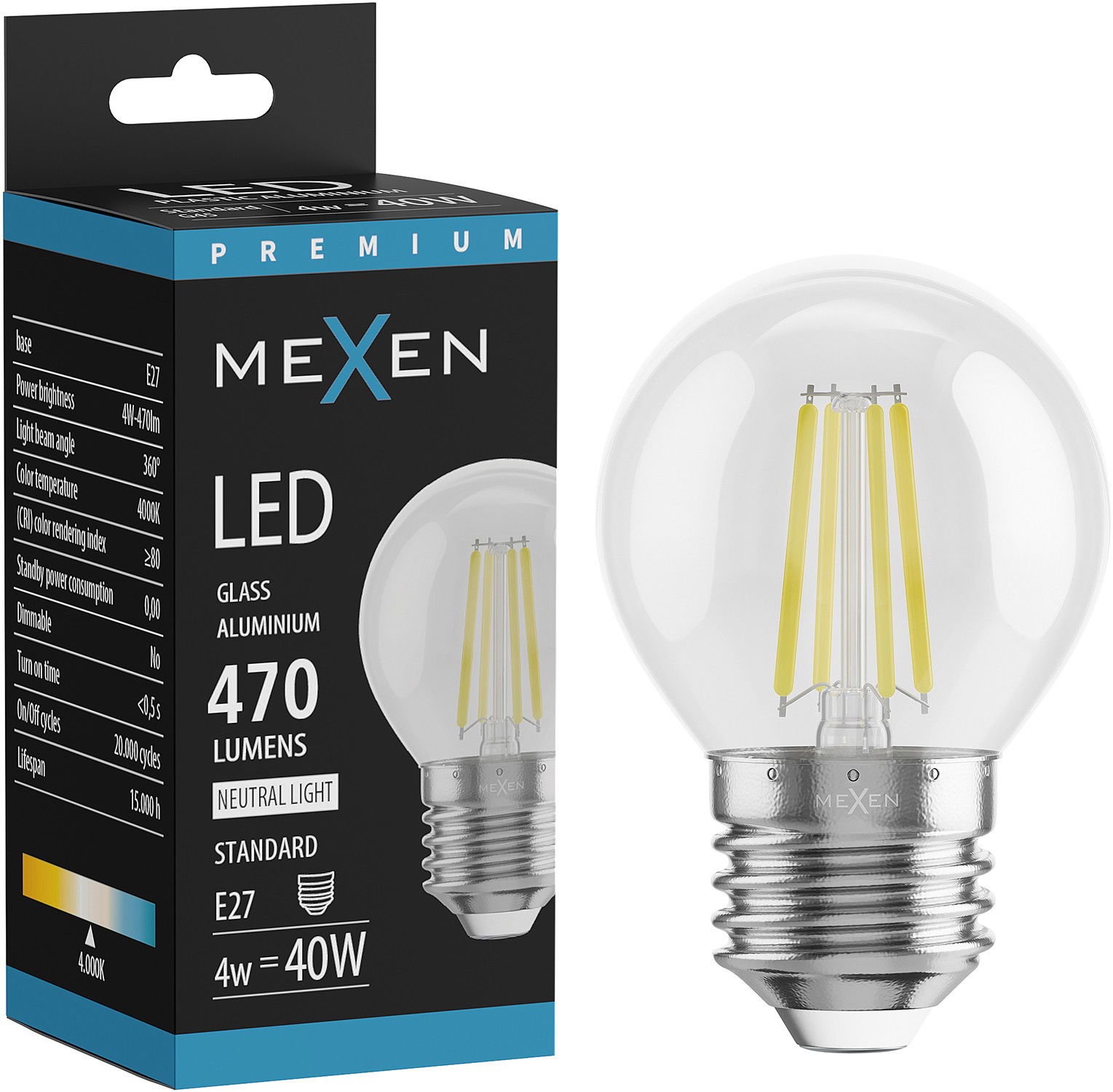 Mexen Vintis LED filament izzó E27, G45, 4W, Semleges - 4000K, 470 lm, áttetsző - L156-E27-0427-00 - L156-E27-0440-00