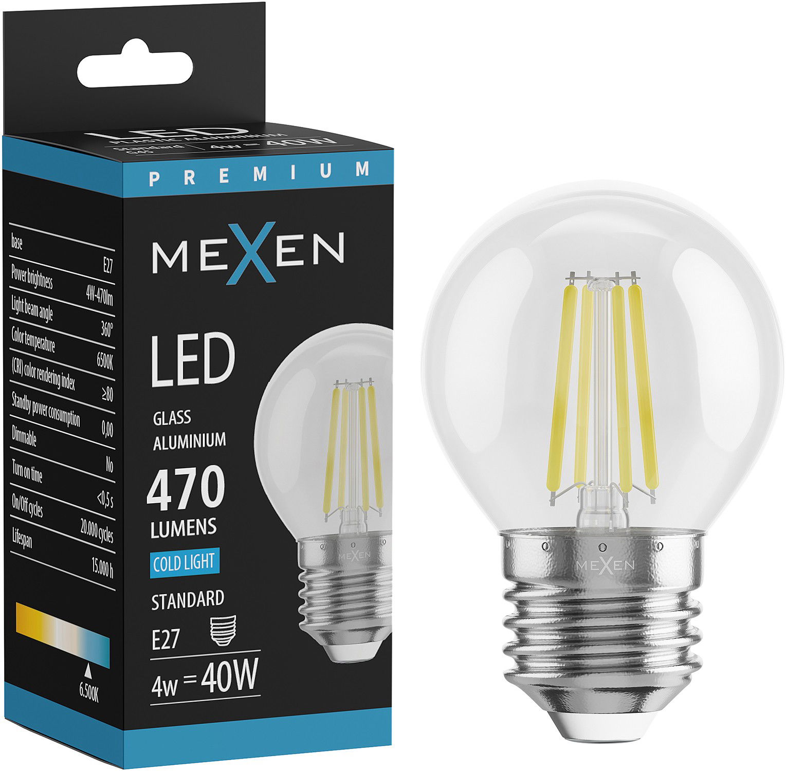Mexen Vintis LED filament izzó E27, G45, 4W, Hideg - 6500K, 470 lm, átlátszó - L156-E27-0465-00