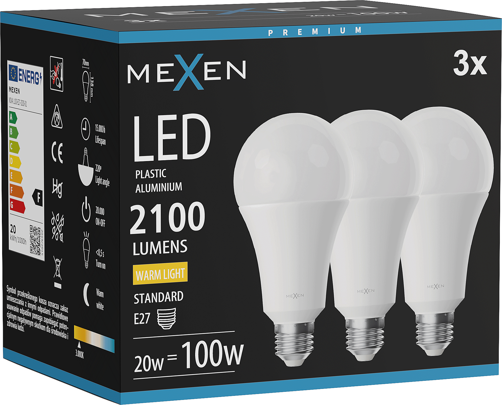 Mexen Nova 3x LED izzó E27, A70, 20W, Meleg - 3000K, 2100 lm - L100-E27-2030-01x03
