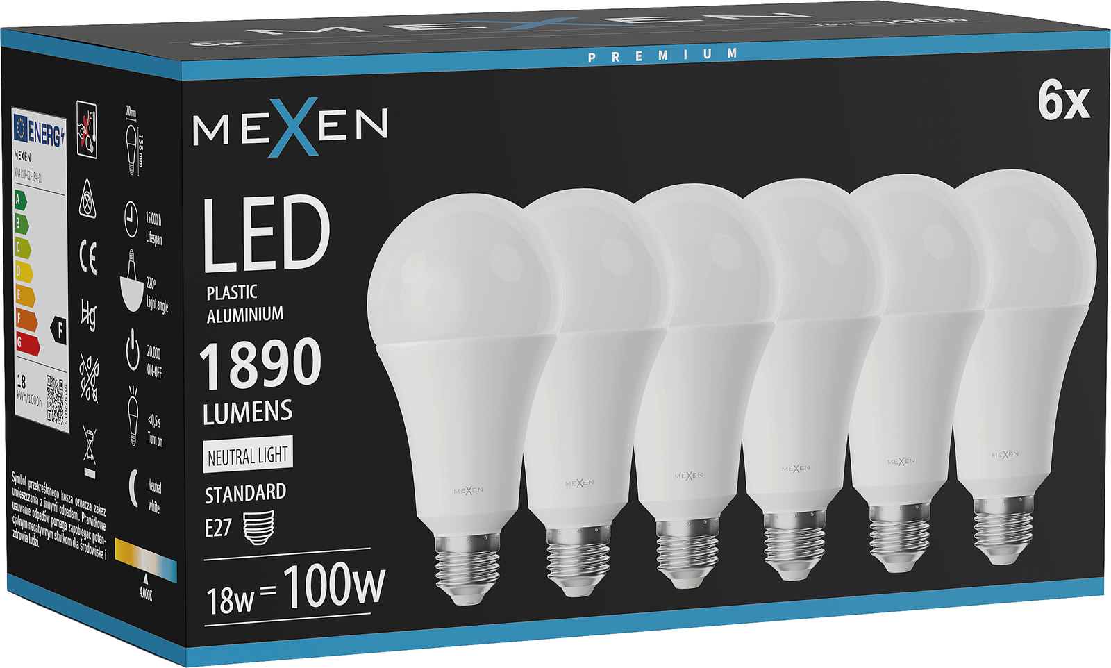 Mexen Nova 6x LED izzó E27, A70, 18W, Semleges - 4000K, 1890 lm - L100-E27-1840-01x06