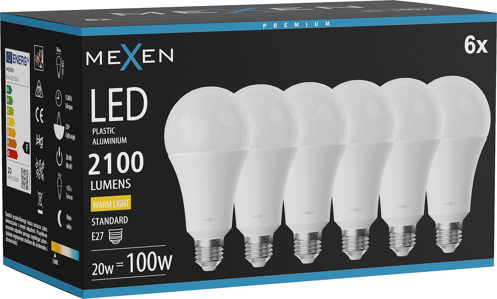 Mexen Nova 6x LED izzó E27, A70, 20W, Meleg - 3000K, 2100 lm - L100-E27-2030-01x06