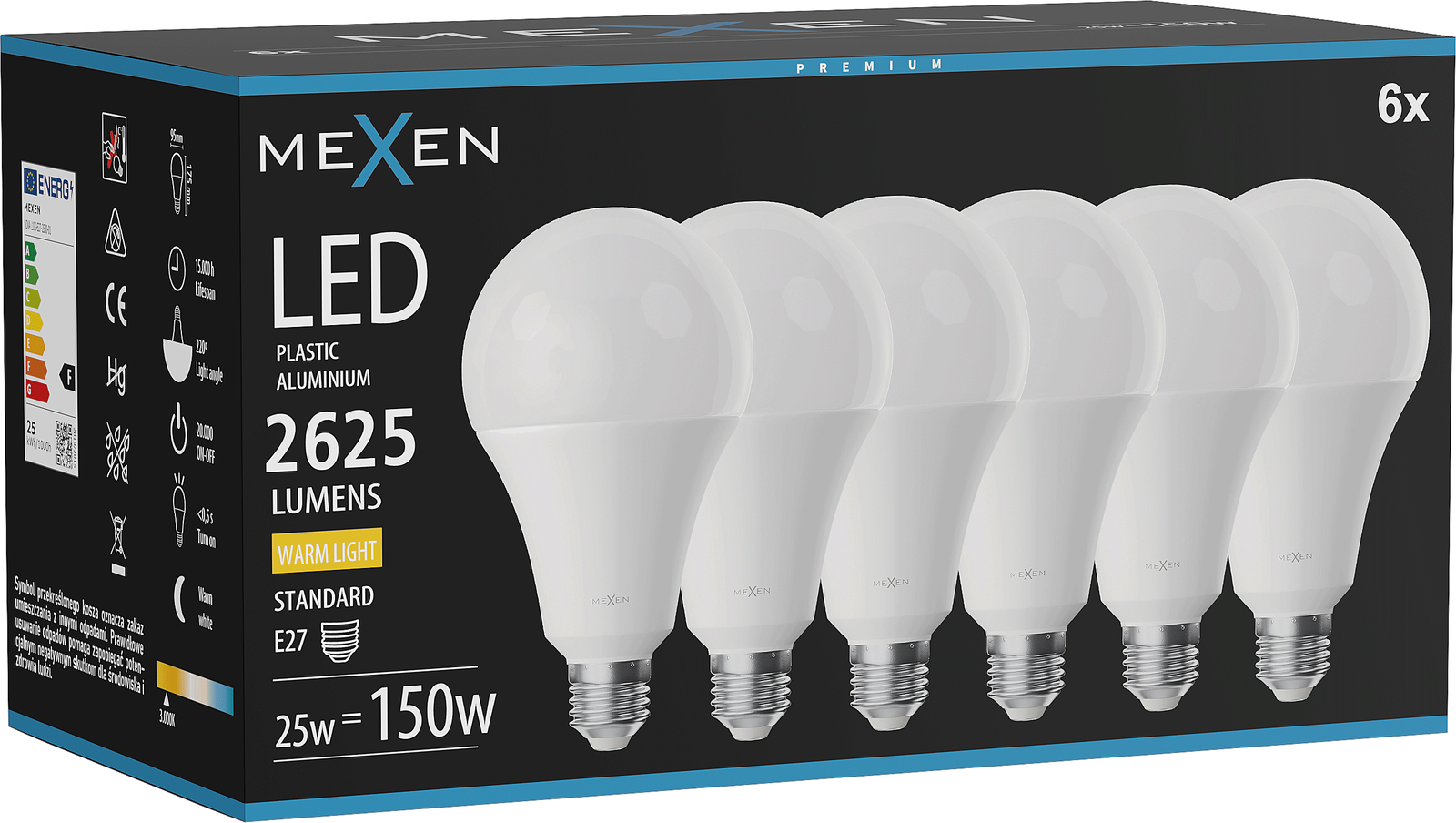 Mexen Nova 6x LED izzó E27, A95, 25W, Meleg - 3000K, 2625 lm - L100-E27-2530-01x06