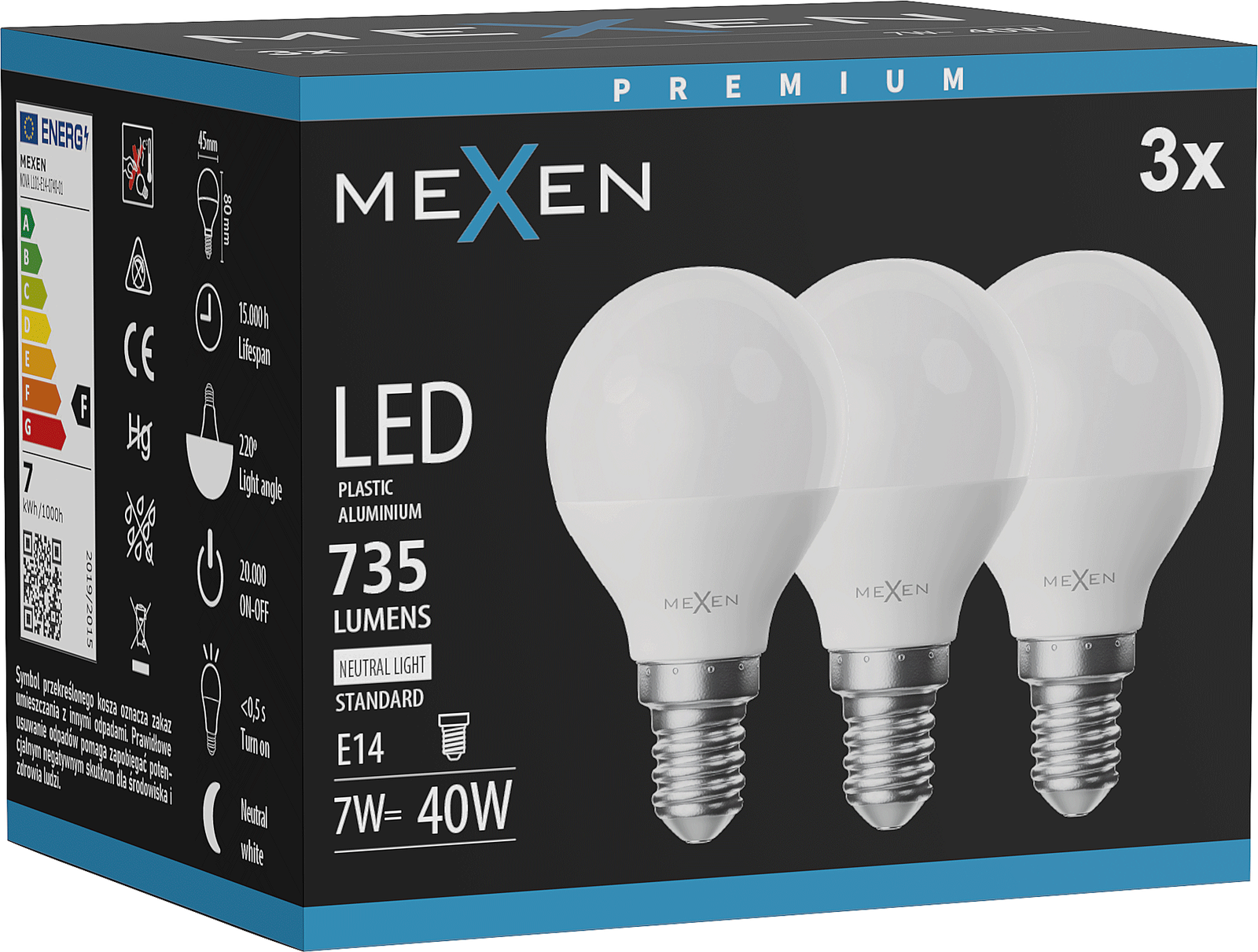 Mexen Nova 3x LED izzó E14, G45, 7W, Semleges - 4000K, 735 lm - L101-E14-0740-01x03