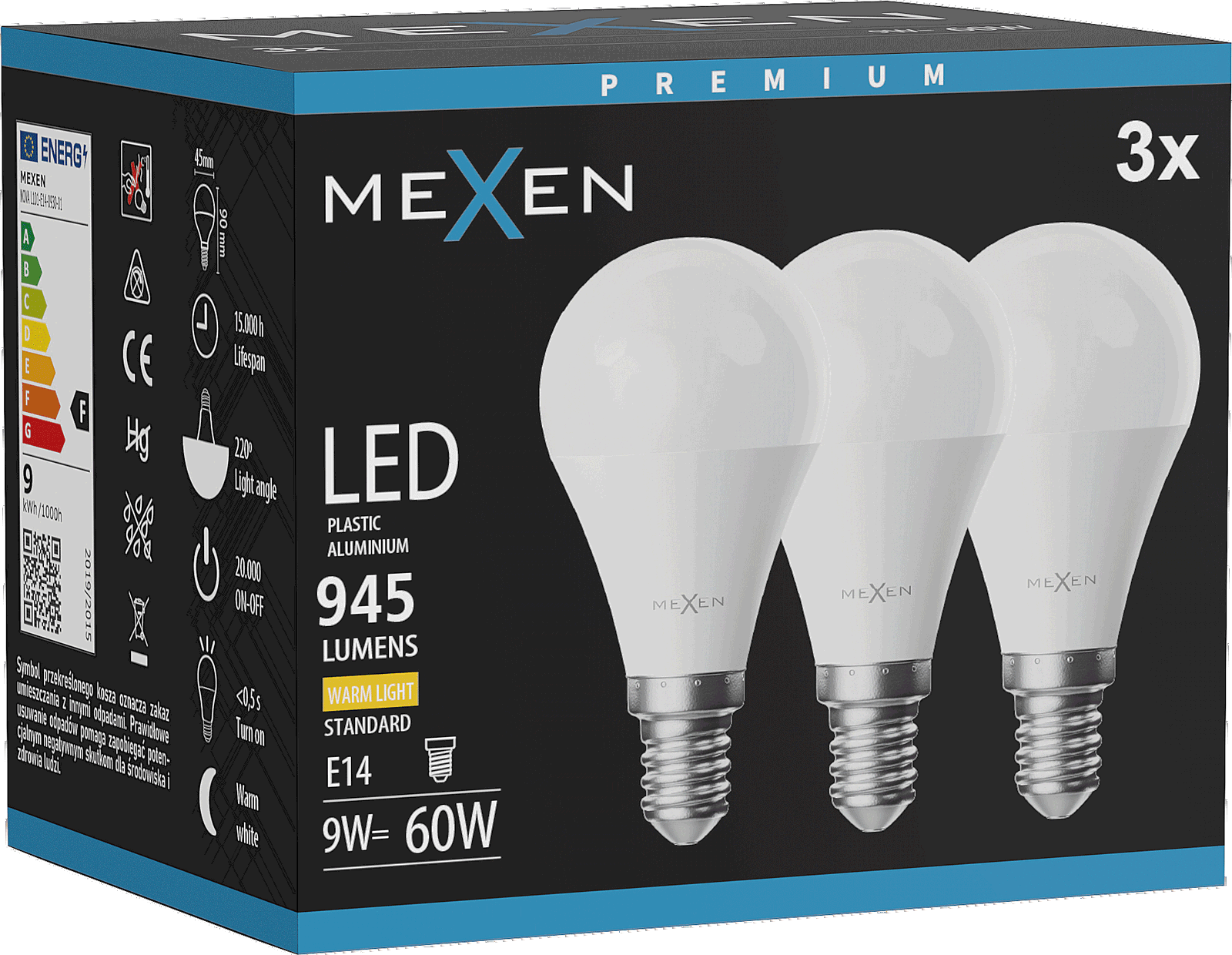 Mexen Nova 3x LED izzó E14, G45, 9W, Meleg - 3000K, 945 lm - L101-E14-0930-01x03