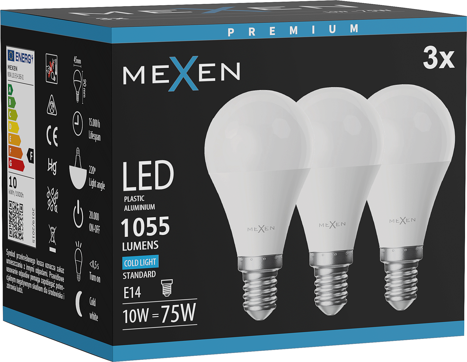 Mexen Nova 3x LED izzó E14, G45, 10W, Hideg - 6500K, 1055 lm - L101-E14-1065-01x03