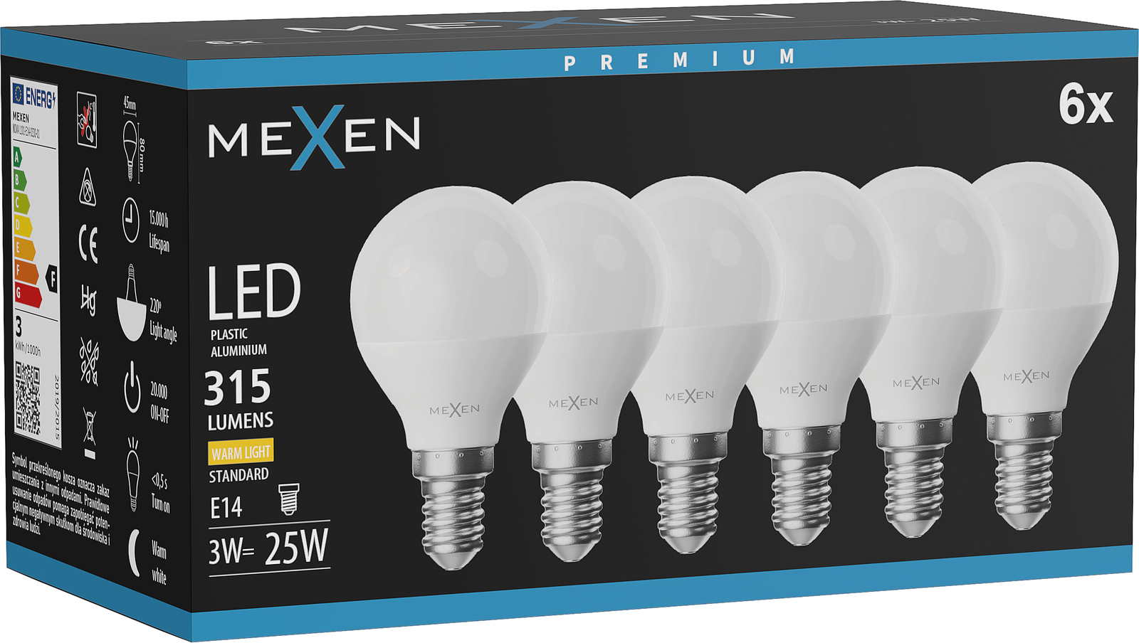 Mexen Nova 6x LED izzó E14, G45, 3W, Meleg - 3000K, 315 lm - L101-E14-0330-01x06