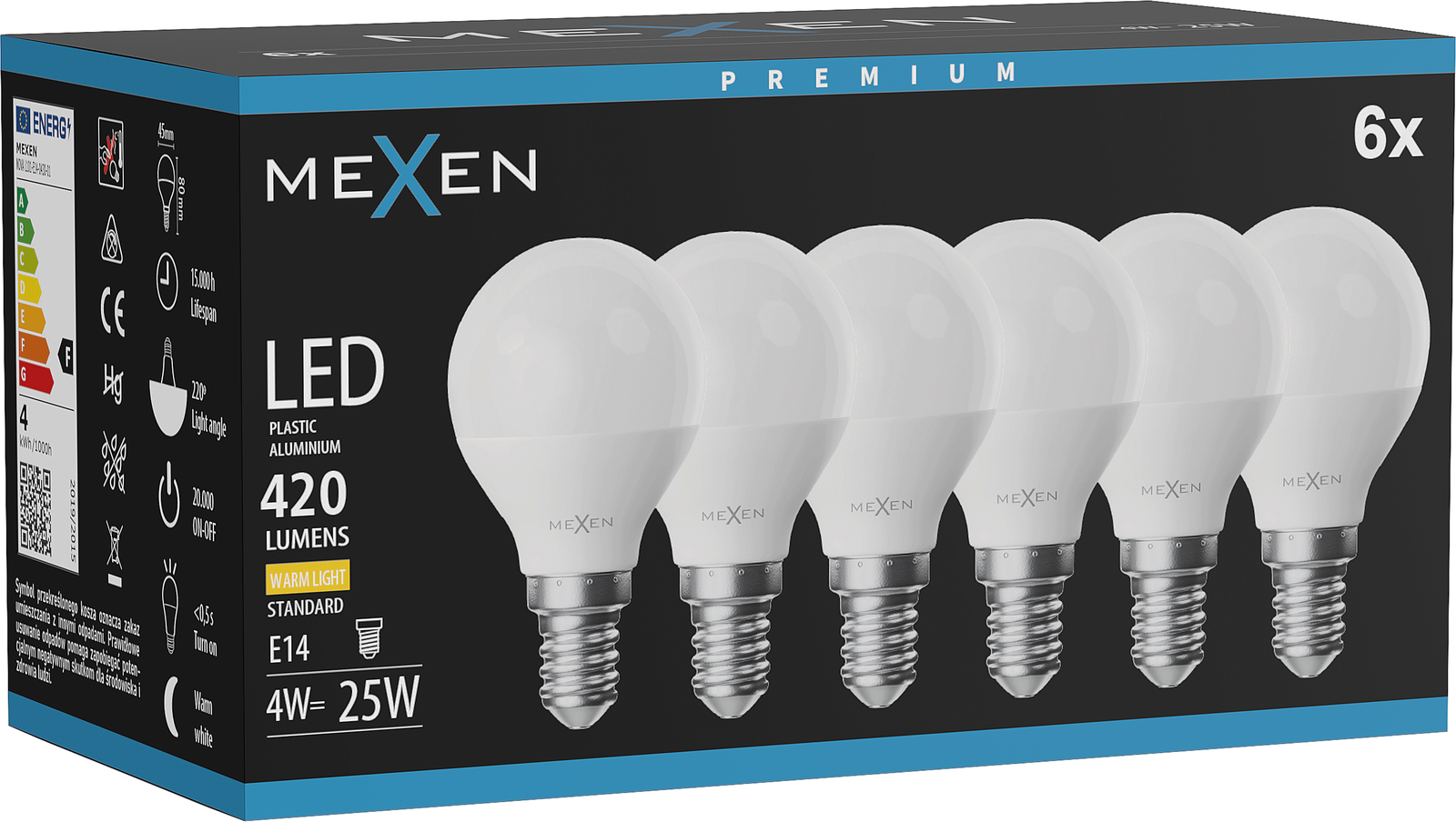 Mexen Nova 6x LED izzó E14, G45, 4W, Meleg - 3000K, 420 lm - L101-E14-0430-01x06