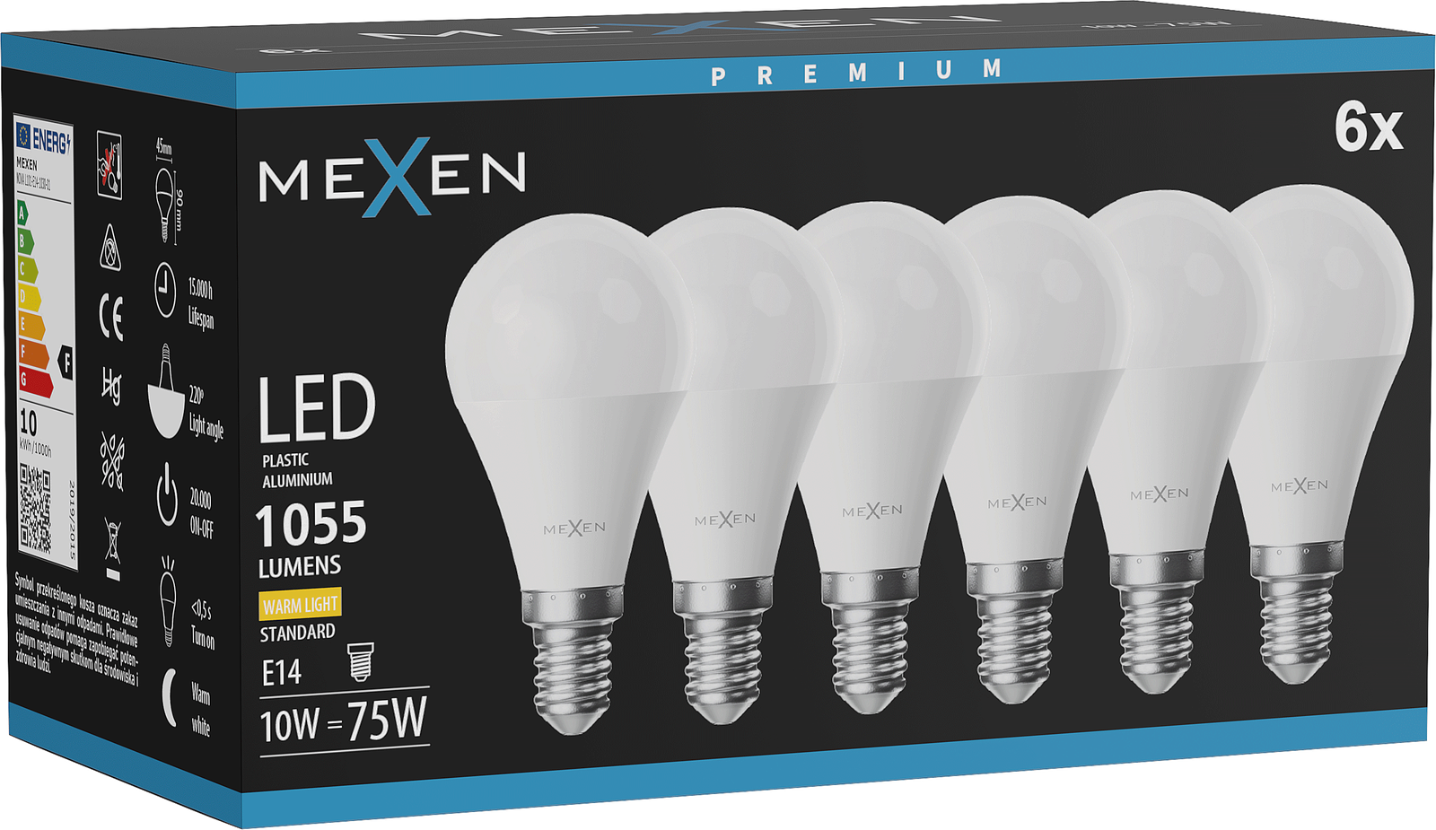 Mexen Nova 6x LED izzó E14, G45, 10W, Meleg - 3000K, 1055 lm - L101-E14-1030-01x06