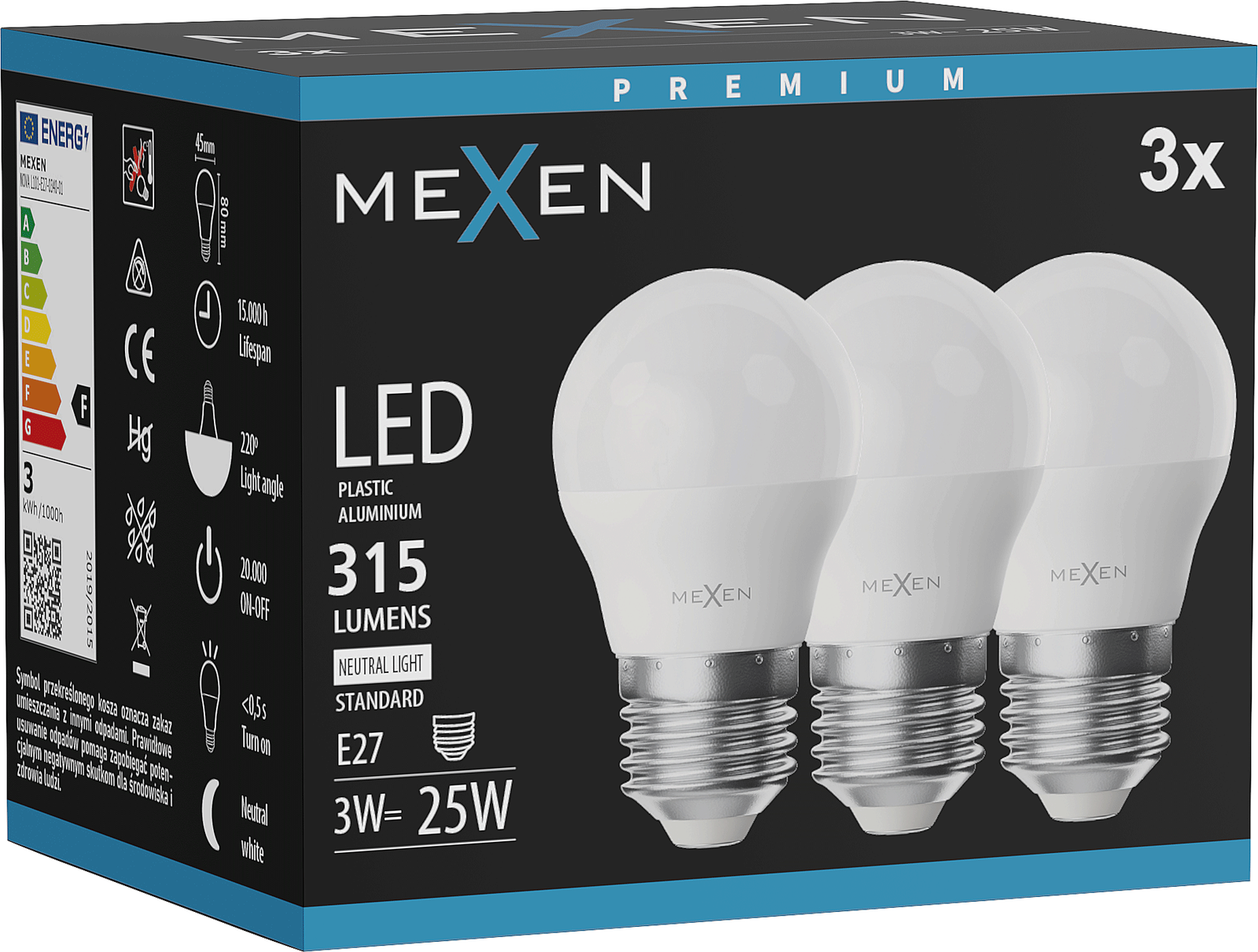 Mexen Nova 3x LED izzó E27, G45, 3W, Semleges - 4000K, 315 lm - L101-E27-0340-01x03