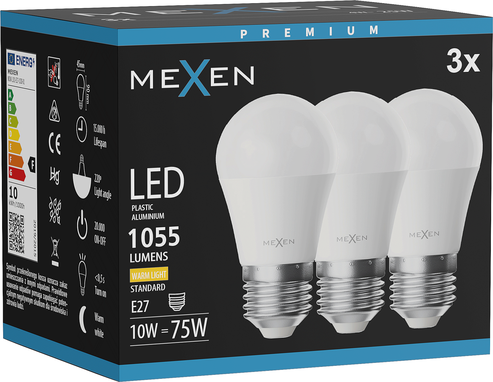 Mexen Nova 3x LED izzó E27, G45, 10W, Meleg - 3000K, 1055 lm - L101-E27-1030-01x03