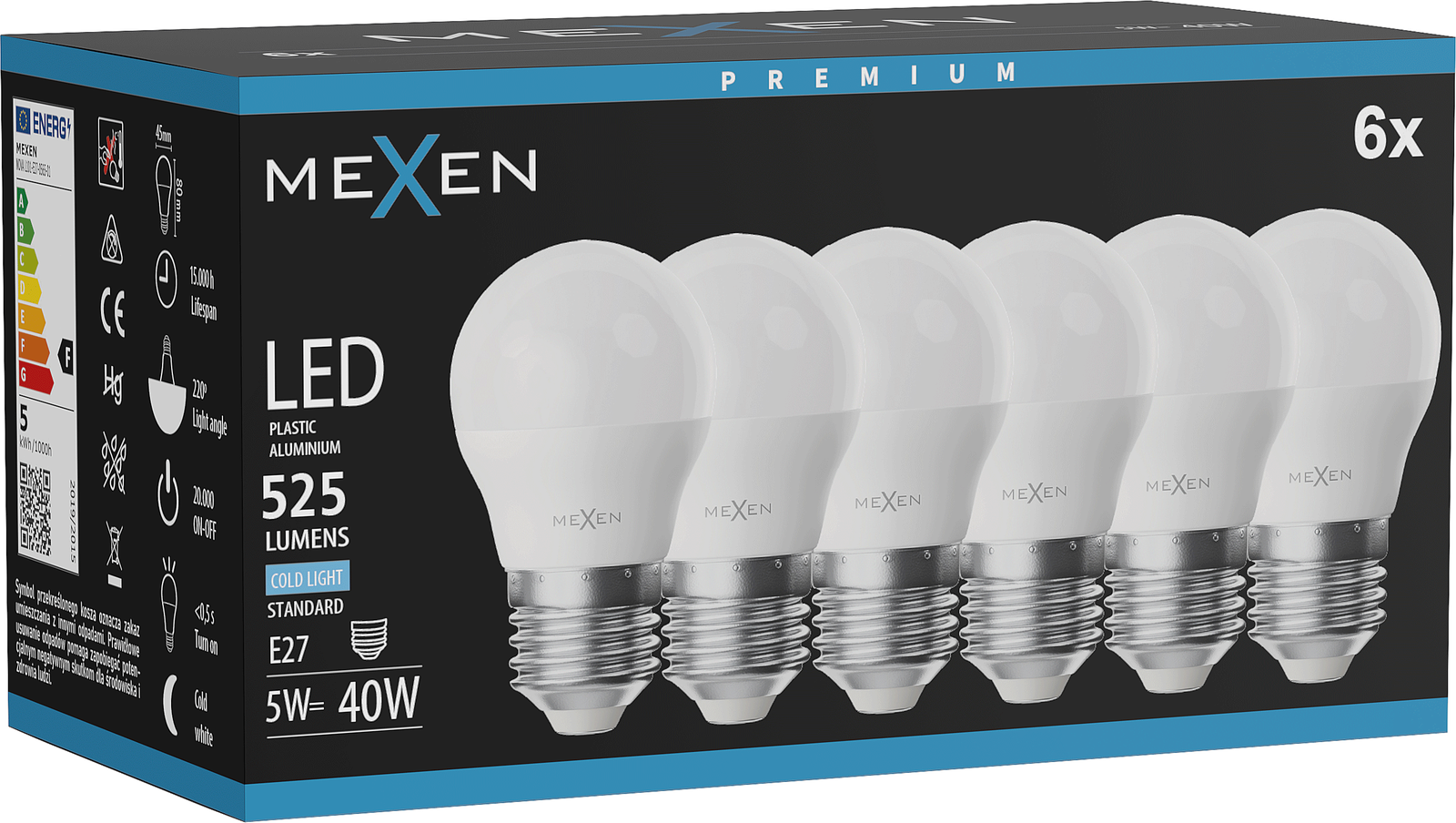 Mexen Nova 6x LED izzó E27, G45, 5W, Hideg - 6500K, 525 lm - L101-E27-0565-01x06