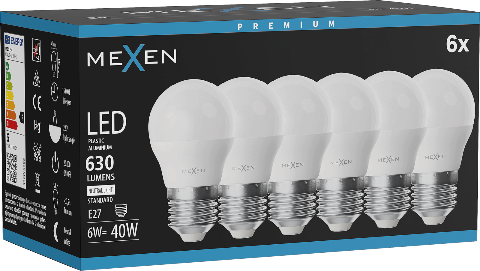 Mexen Nova 6x LED izzó E27, G45, 6W, Semleges - 4000K, 630 lm - L101-E27-0640-01x06