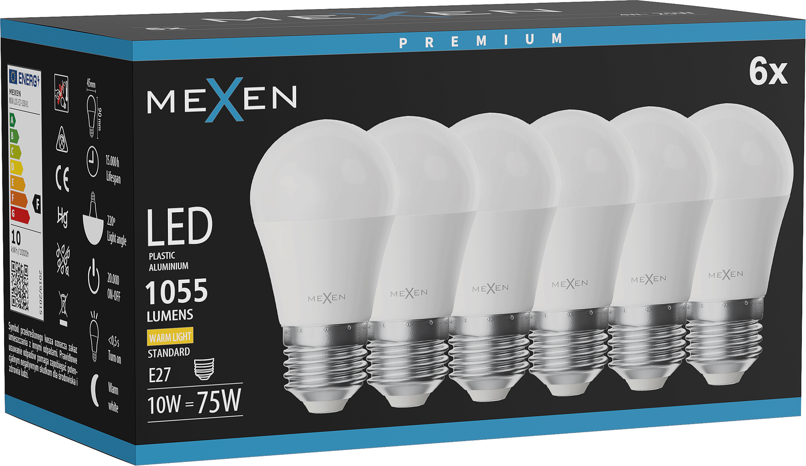 Mexen Nova 6x LED izzó E27, G45, 10W, Meleg - 3000K, 1055 lm - L101-E27-1030-01x06