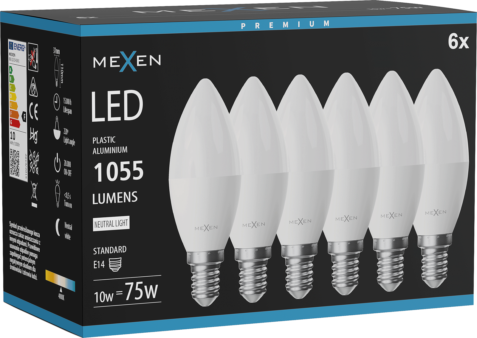 Mexen Nova 6x LED izzó E14, C37, 10W, Semleges - 4000K, 1055 lm - L102-E14-1040-01x06