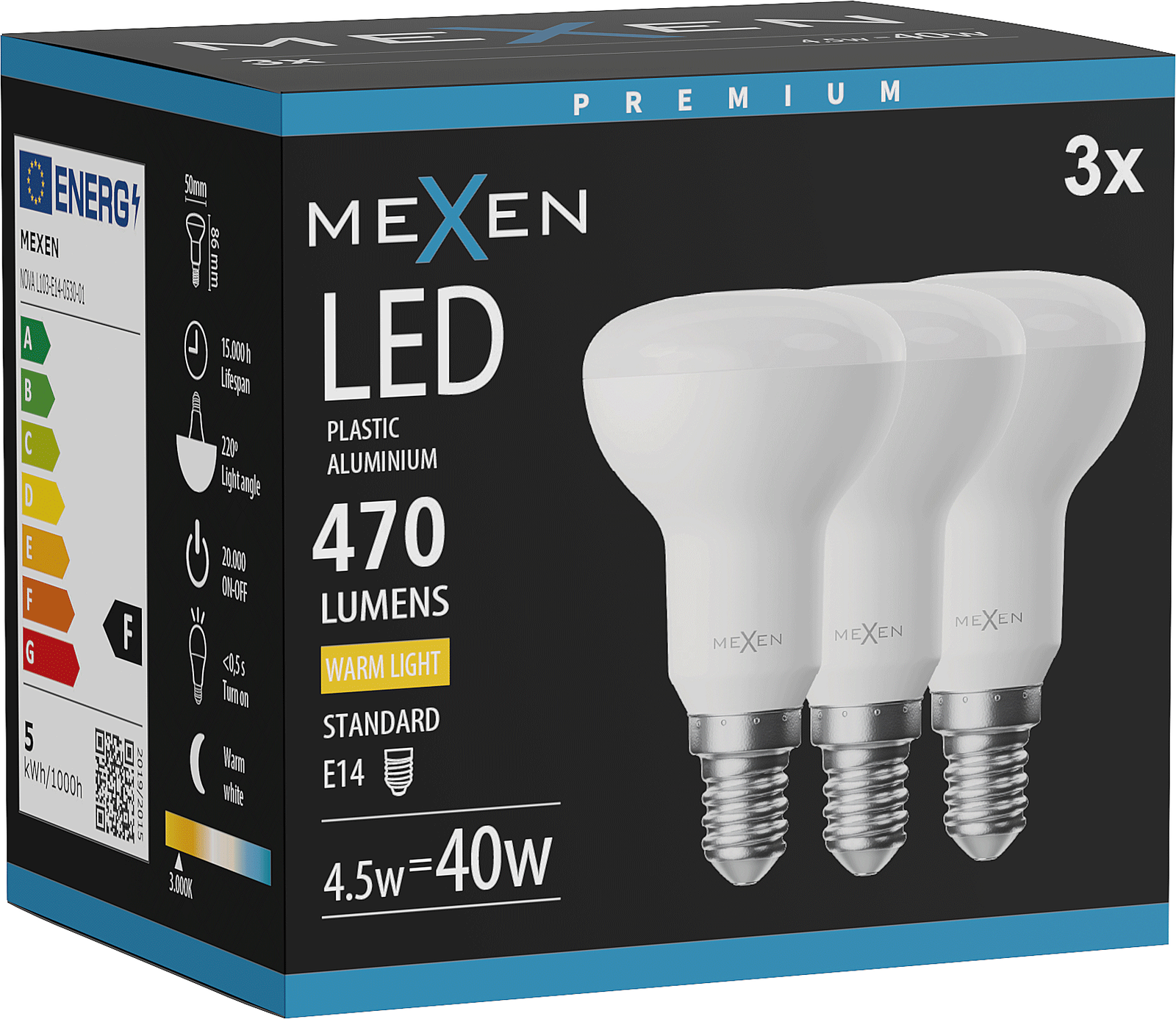 Mexen Nova 3x LED izzó E14, R50, 4,5W, Meleg - 3000K, 470 lm - L103-E14-0530-01x03