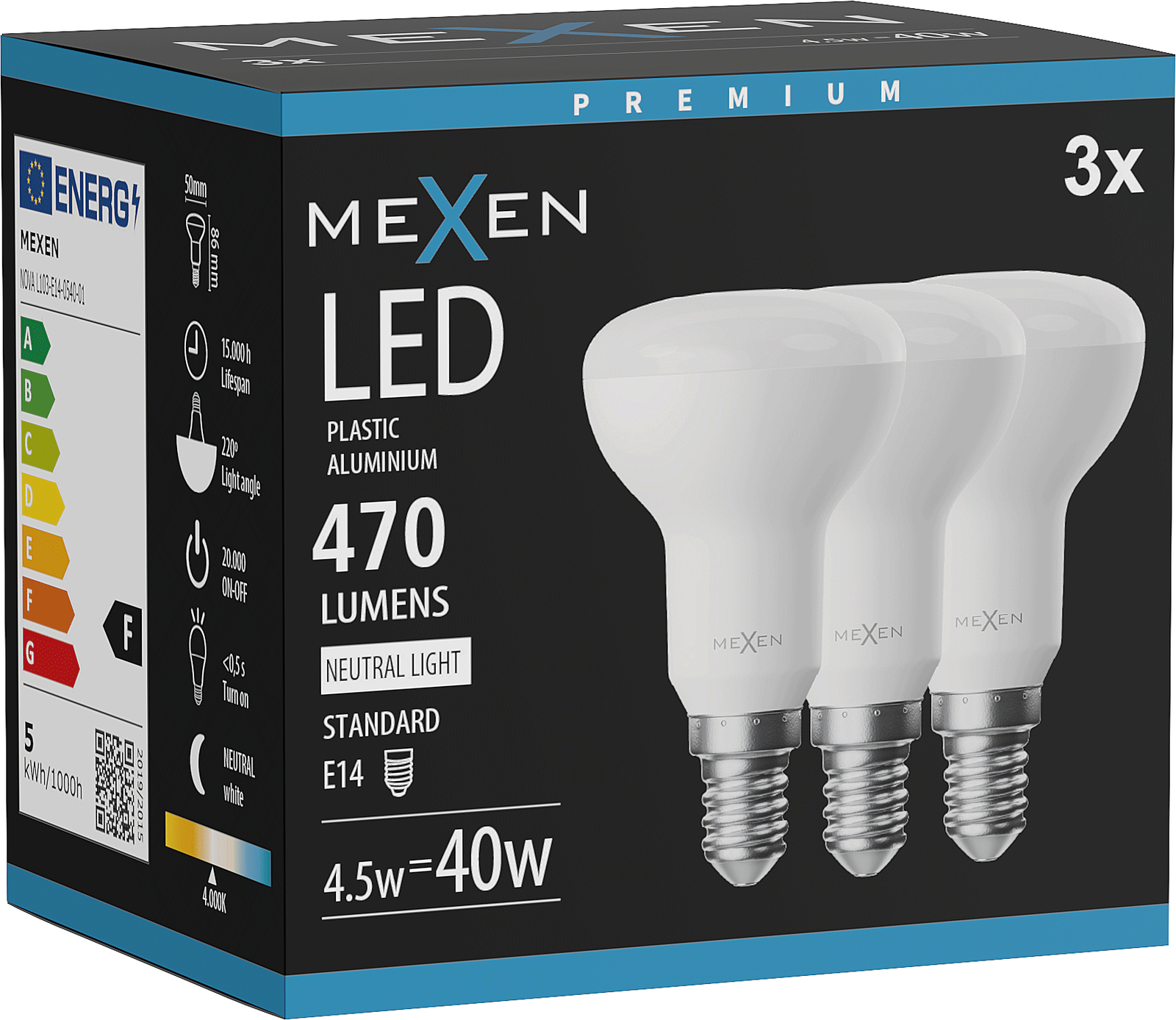 Mexen Nova 3x LED izzó E14, R50, 4,5W, Semleges - 4000K, 470 lm - L103-E14-0540-01x03