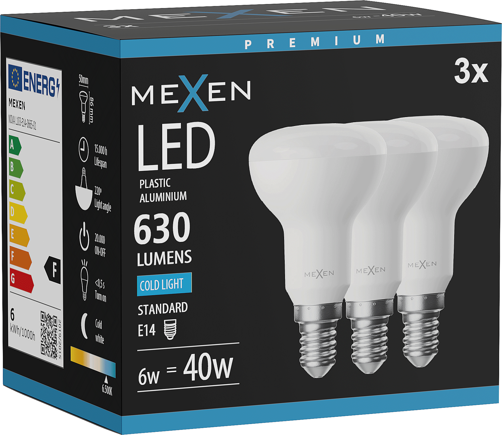Mexen Nova 3x LED izzó E14, R50, 6W, Hideg - 6500K, 630 lm - L103-E14-0665-01x03