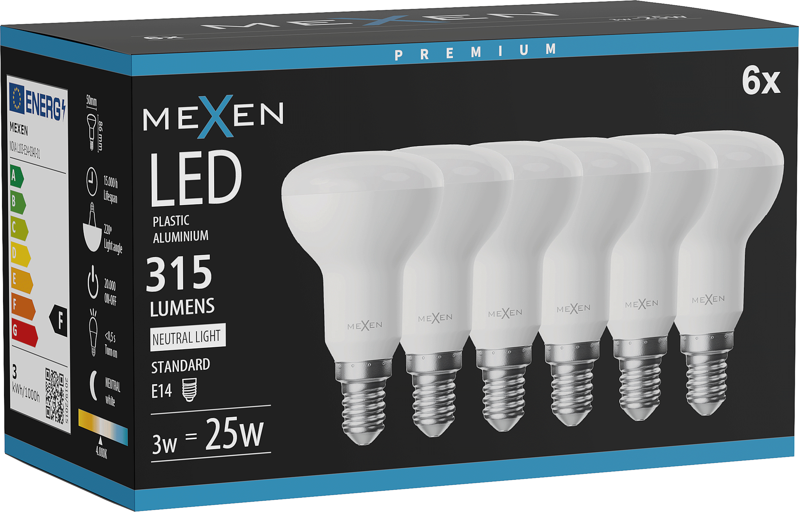 Mexen Nova 6x LED izzó E14, R50, 3W, Semleges - 4000K, 315 lm - L103-E14-0340-01x06