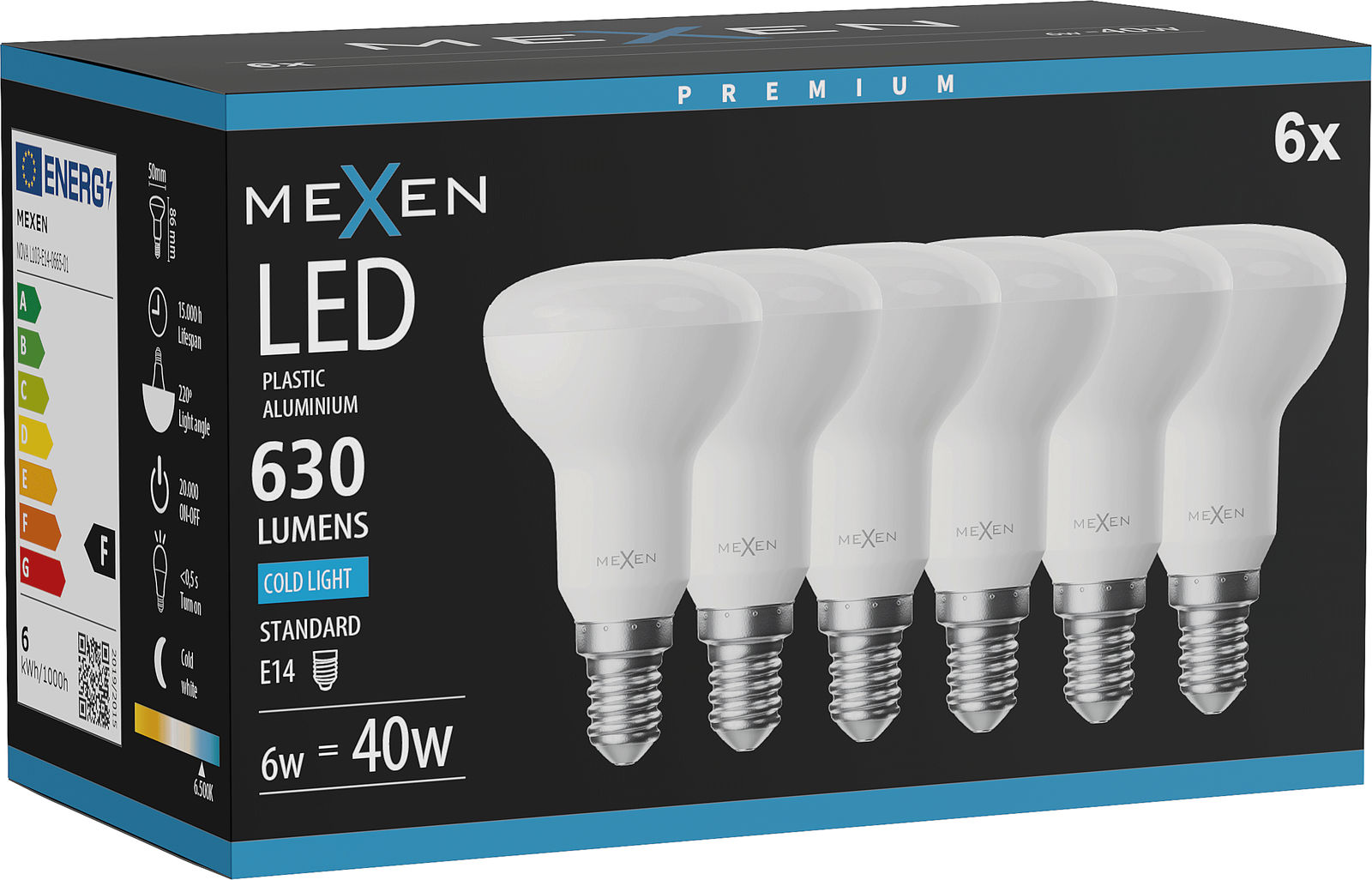 Mexen Nova 6x LED izzó E14, R50, 6W, Hideg - 6500K, 630 lm - L103-E14-0665-01x06