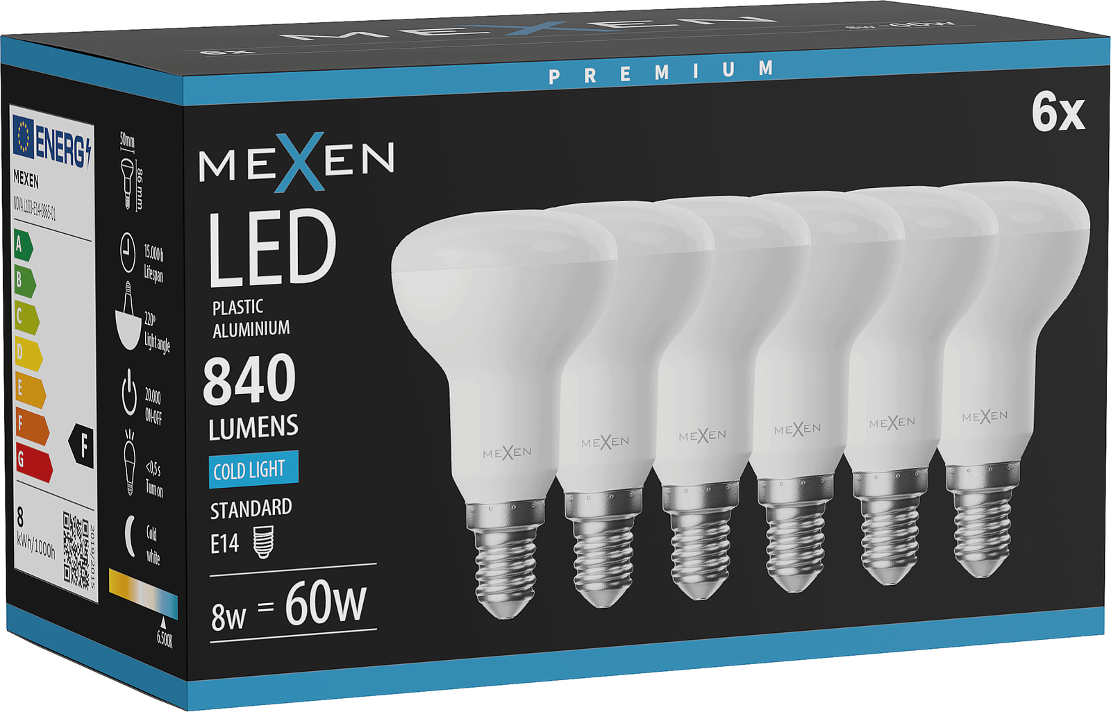 Mexen Nova 6x LED Izzó E14, R50, 8W, Hideg - 6500K, 840 lm - L103-E14-0865-01x06