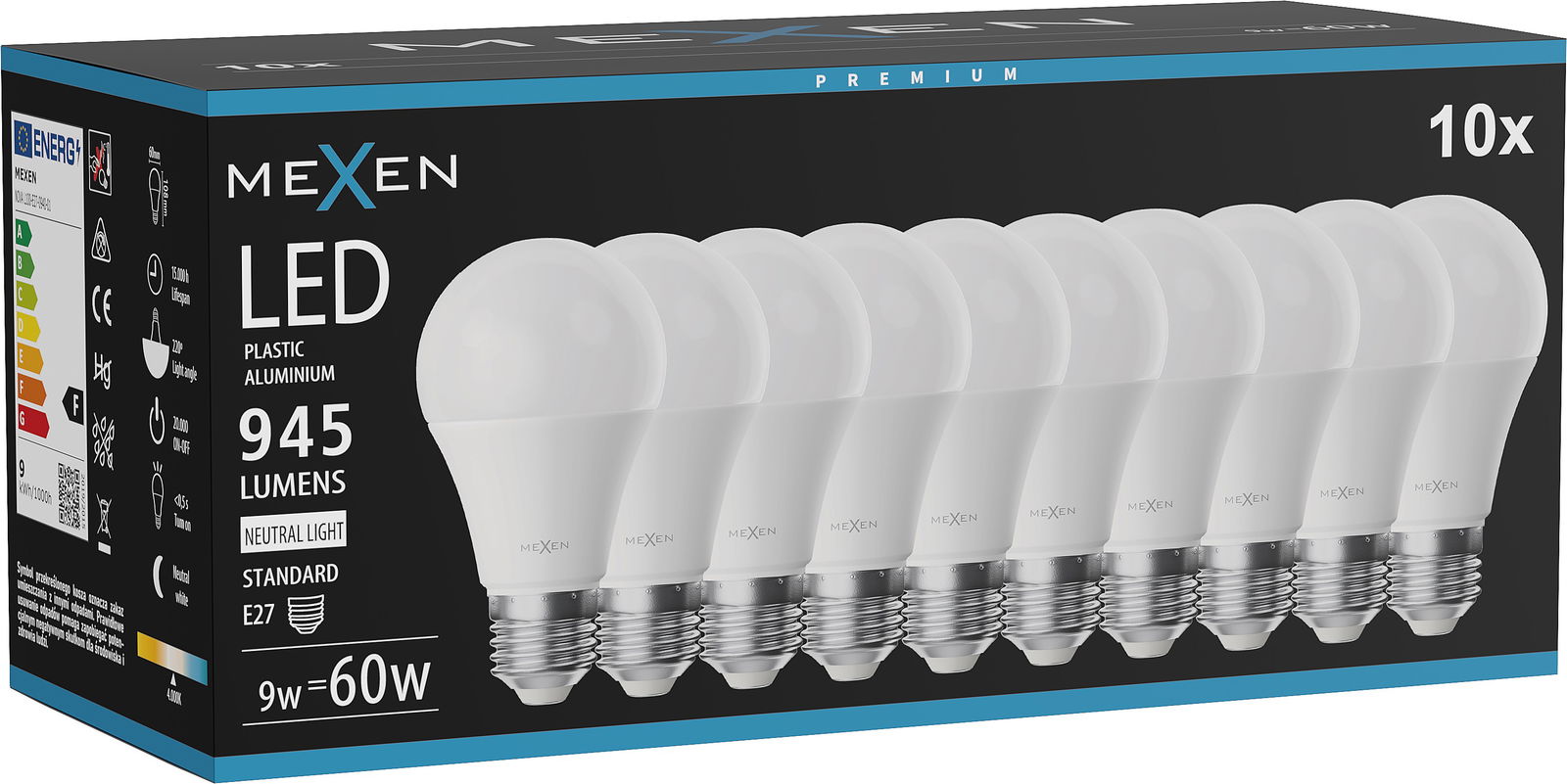 Mexen Nova 10x LED izzó E27, A60, 9W, Semleges - 4000K, 945 lm - L100-E27-0940-01x10