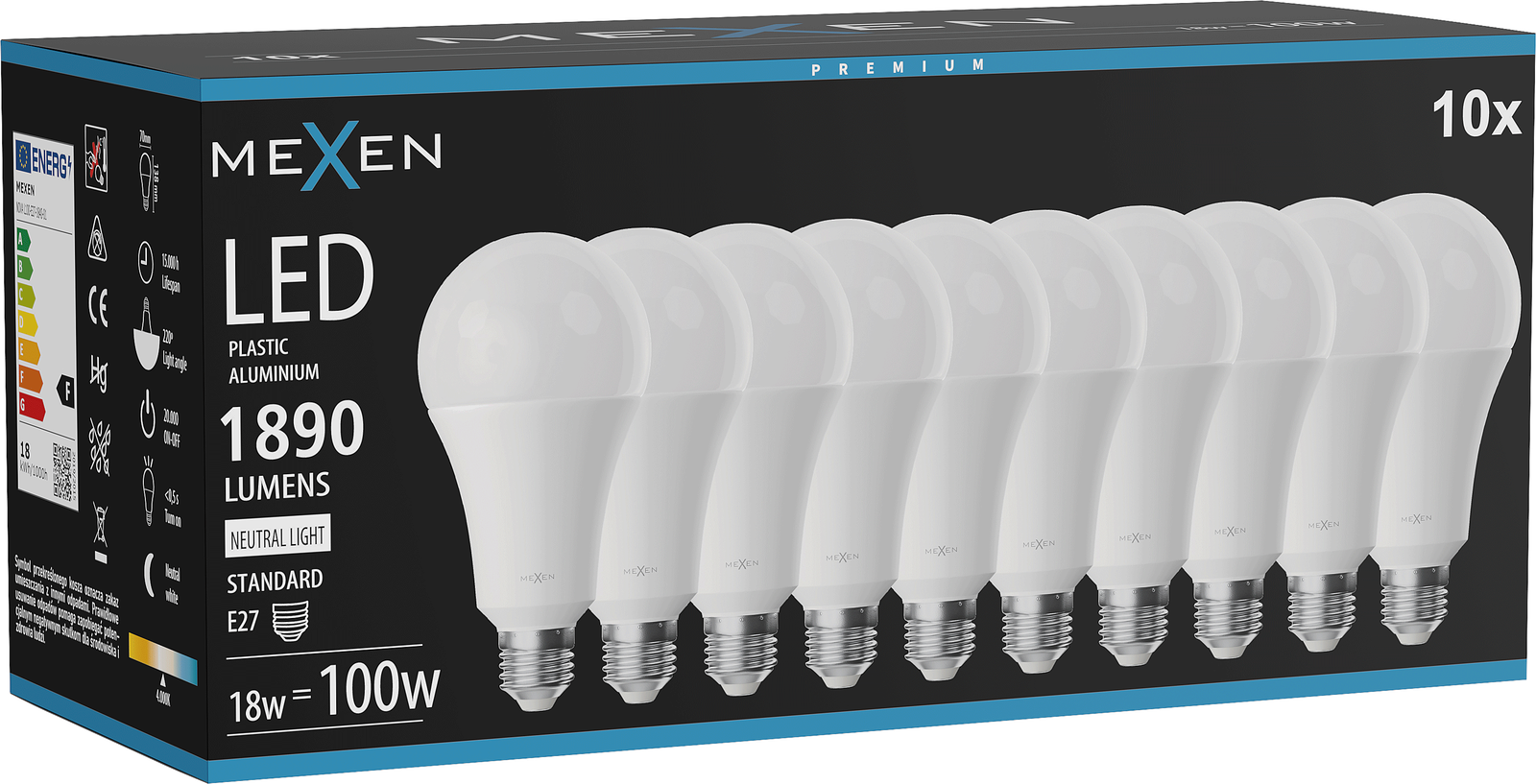 Mexen Nova 10x LED izzó E27, A70, 18W, Semleges - 4000K, 1890 lm - L100-E27-1840-01x10