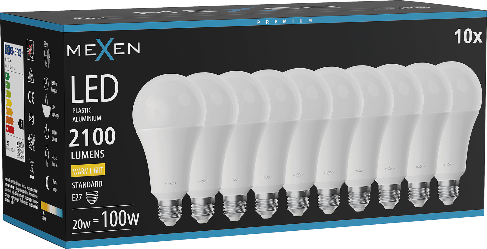Mexen Nova 10x LED izzó E27, A70, 20W, Meleg - 3000K, 2100 lm - L100-E27-2030-01x10