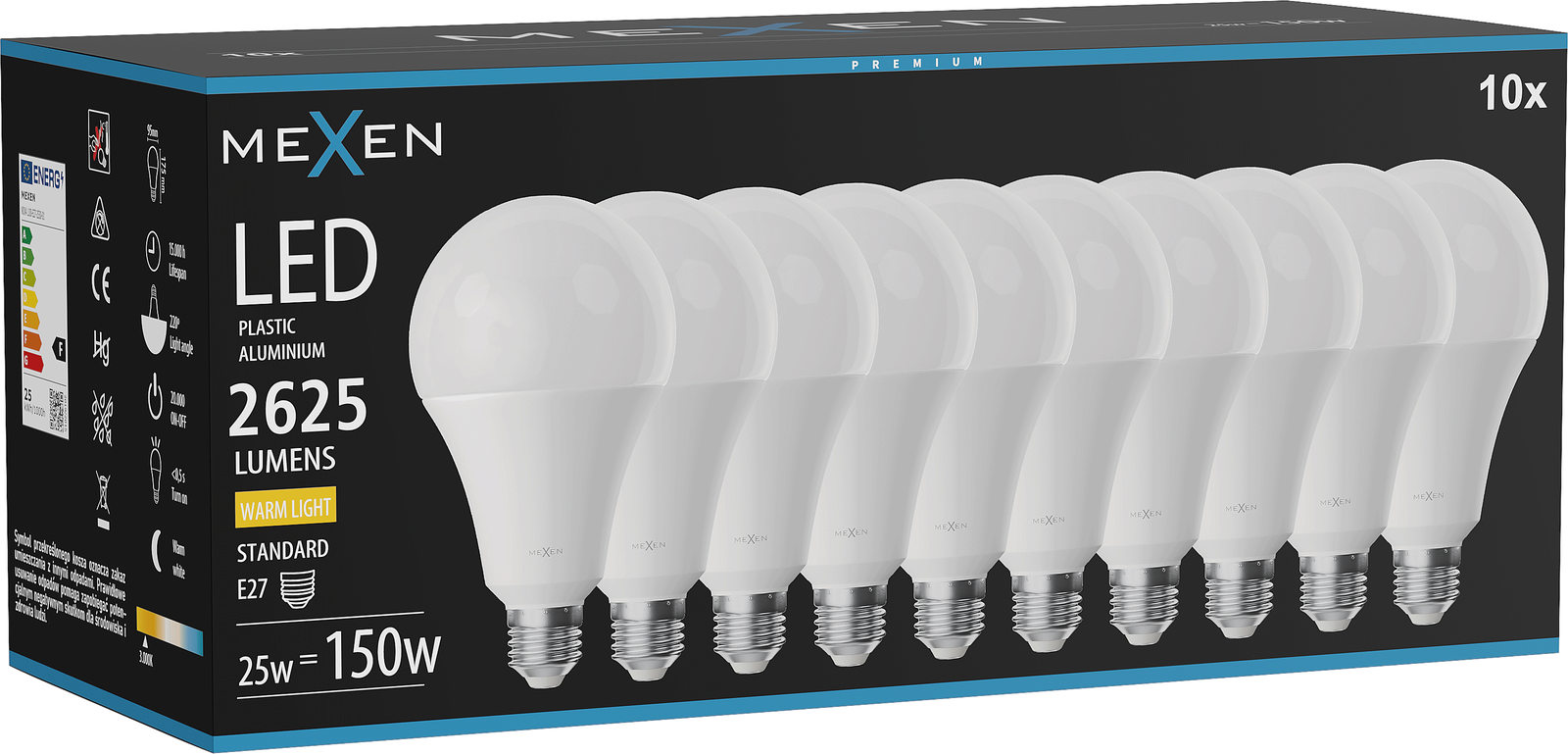 Mexen Nova 10x LED izzó E27, A95, 25W, Meleg - 3000K, 2625 lm - L100-E27-2530-01x10