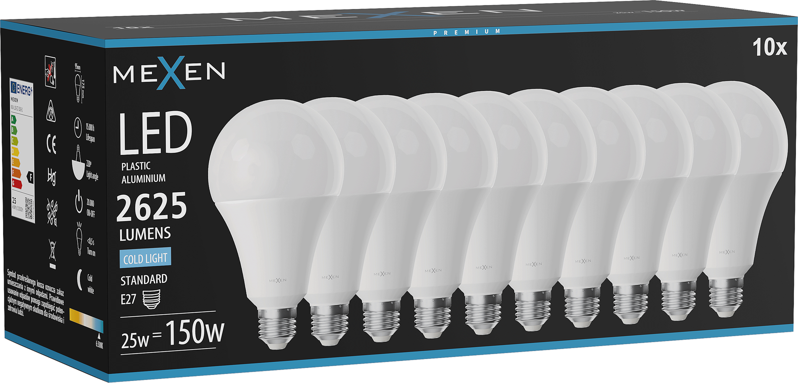 Mexen Nova 10x LED izzó E27, A95, 25W, Hideg - 6500K, 2625 lm - L100-E27-2565-01x10