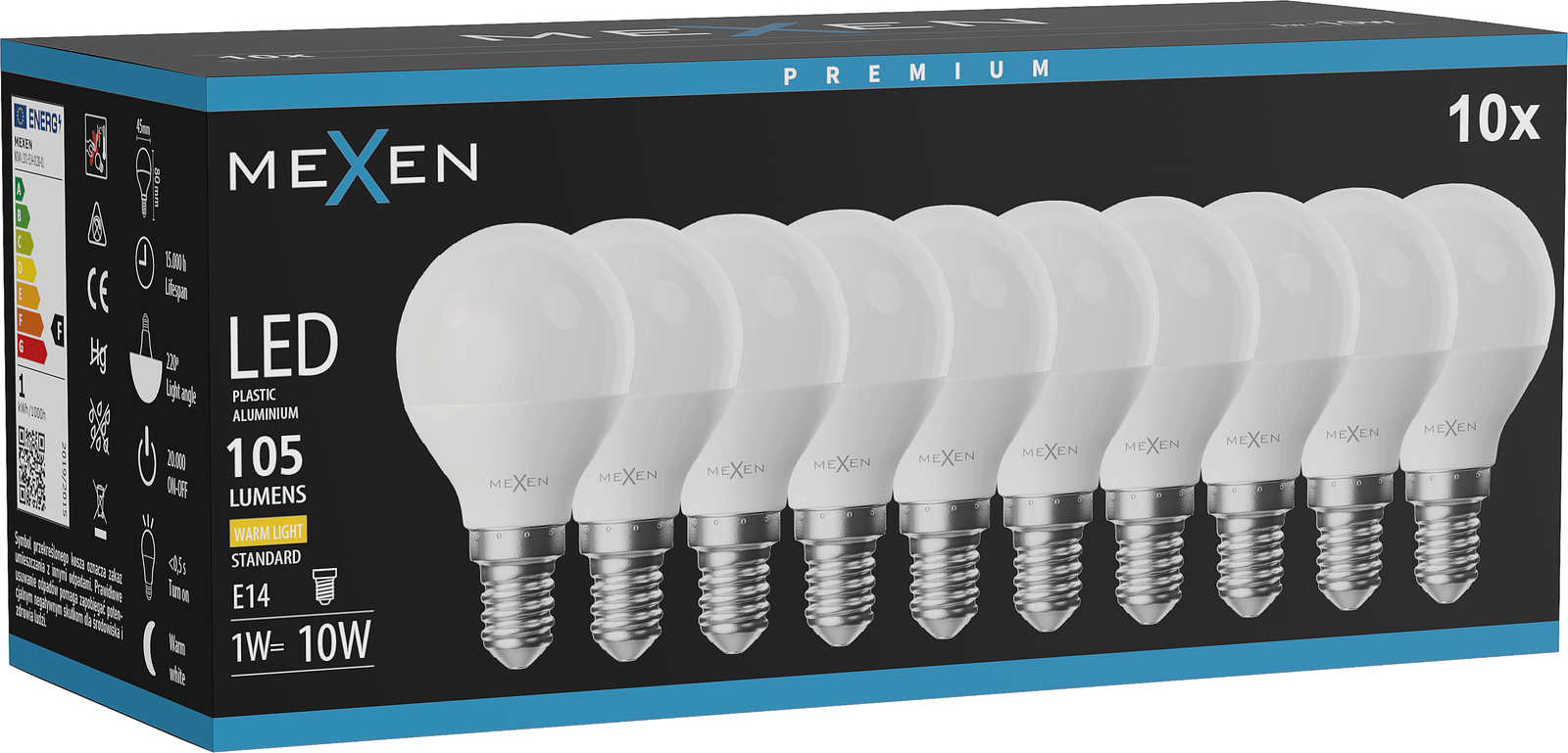 Mexen Nova 10x LED izzó E14, G45, 1W, Meleg - 3000K, 105 lm - L101-E14-0130-01x10