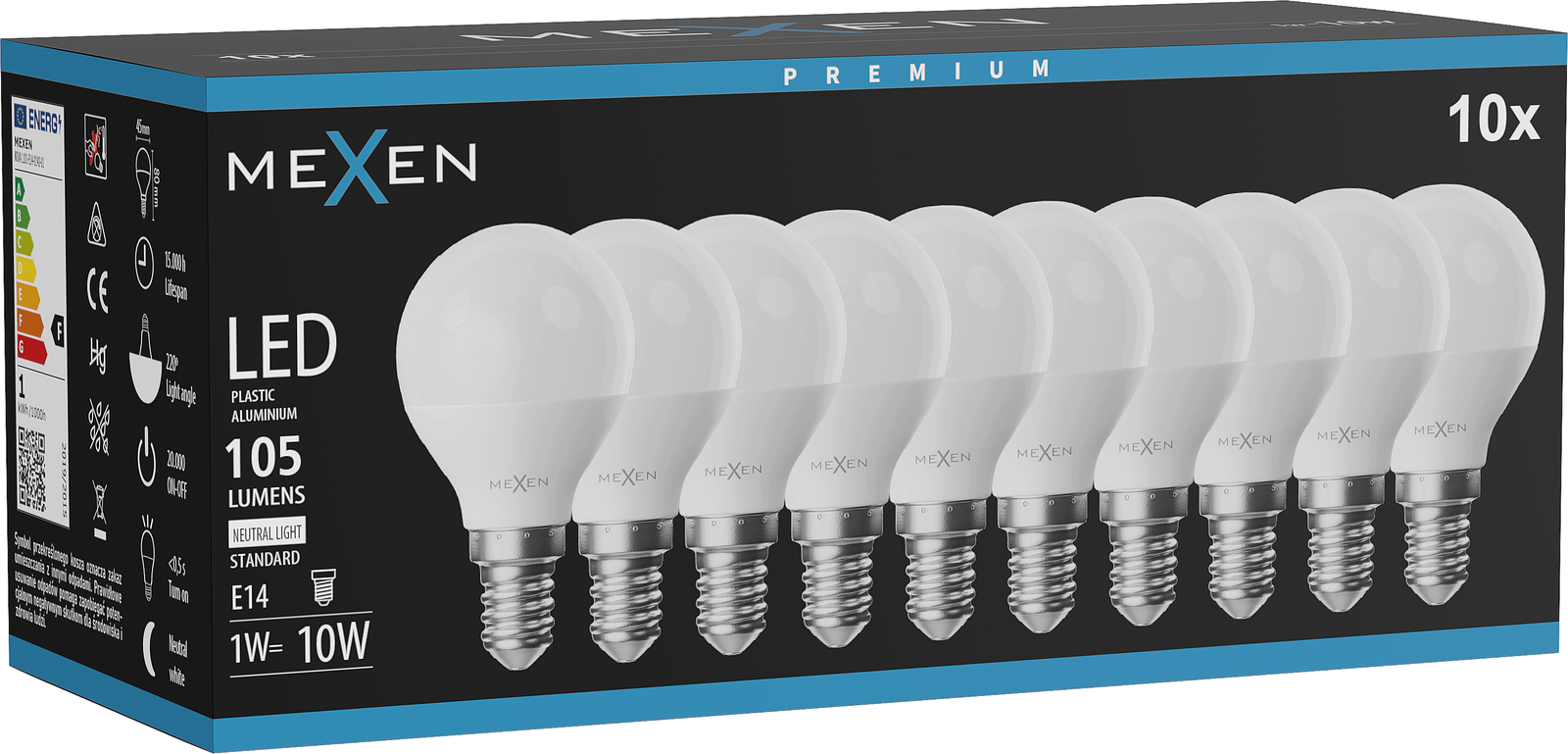 Mexen Nova 10x LED izzó E14, G45, 1W, Semleges - 4000K, 105 lm - L101-E14-0140-01x10