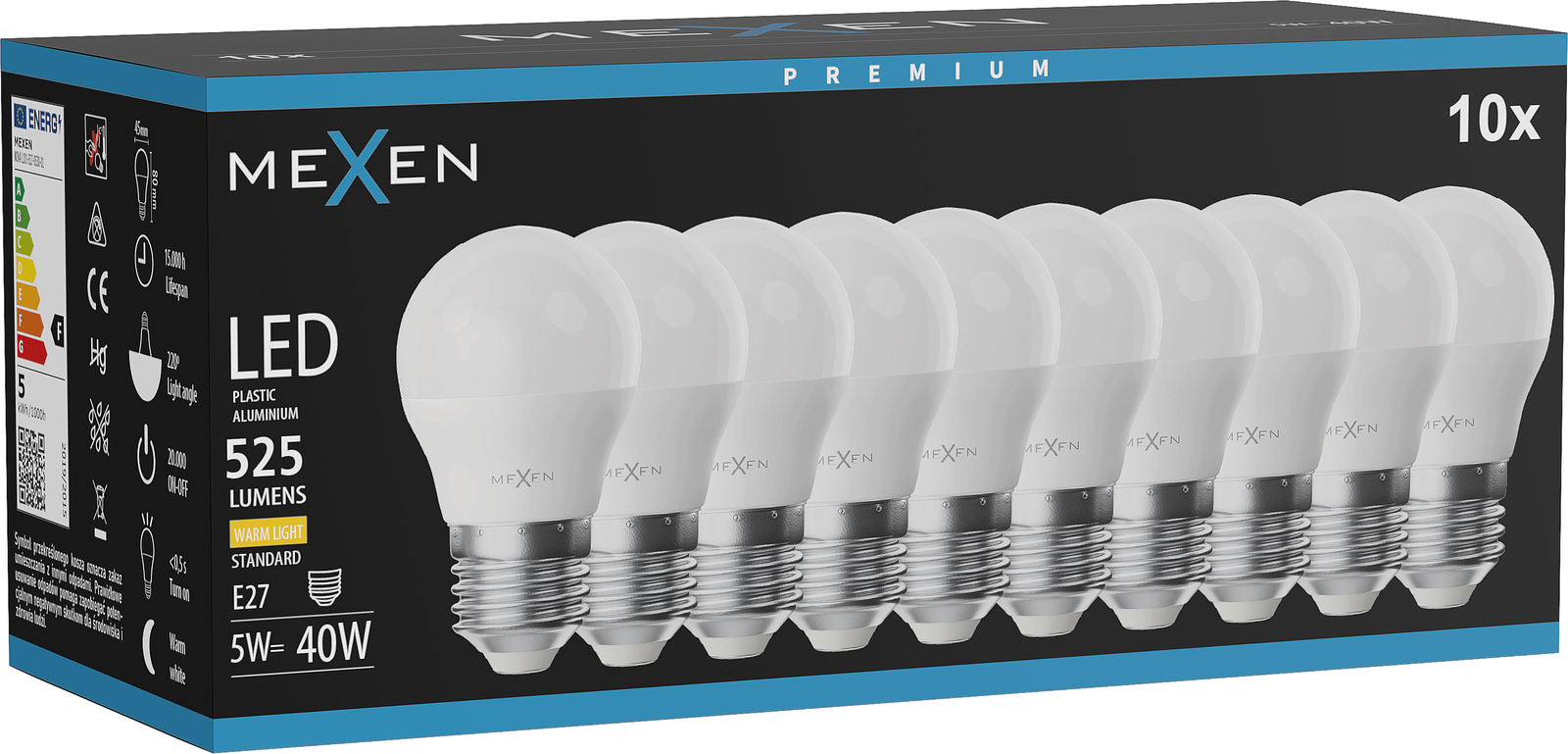 Mexen Nova 10x LED izzó E27, G45, 5W, Meleg - 3000K, 525 lm - L101-E27-0530-01x10