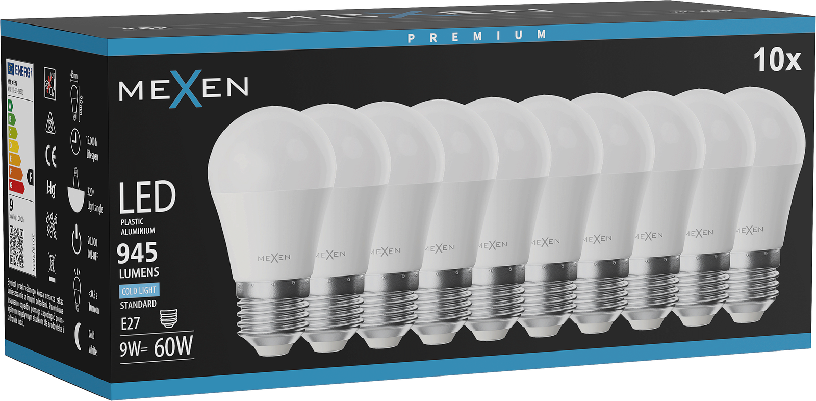 Mexen Nova 10x LED izzó E27, G45, 9W, Hideg - 6500K, 945 lm - L101-E27-0965-01x10