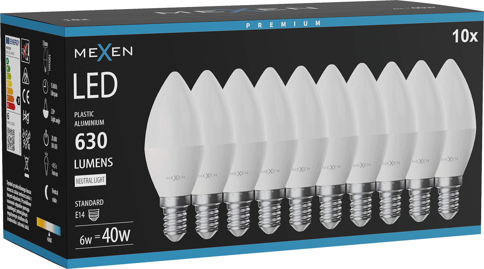 Mexen Nova 10x LED izzó E14, C37, 6W, Semleges - 4000K, 630 lm - L102-E14-0640-01x10