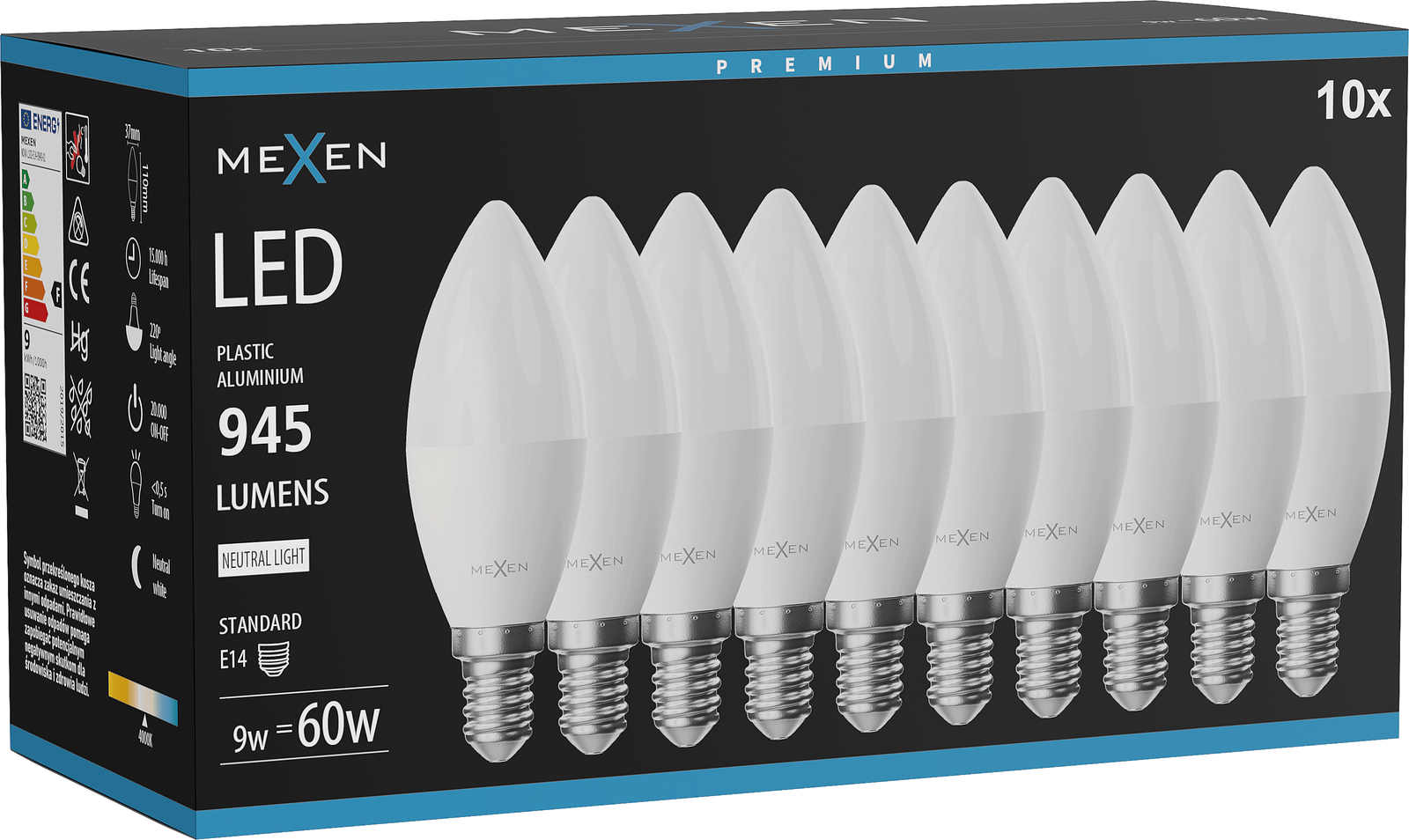 Mexen Nova 10x LED izzó E14, C37, 9W, Semleges - 4000K, 945 lm - L102-E14-0940-01x10