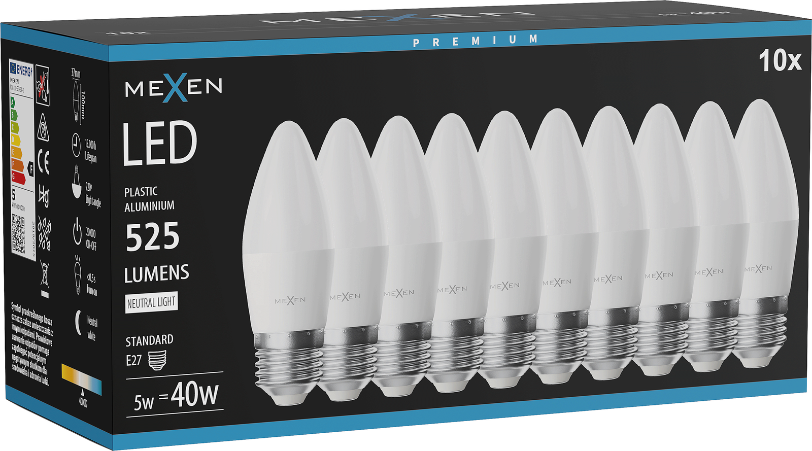 Mexen Nova 10x LED izzó E27, C37, 5W, Semleges - 4000K, 525 lm - L102-E27-0540-01x10