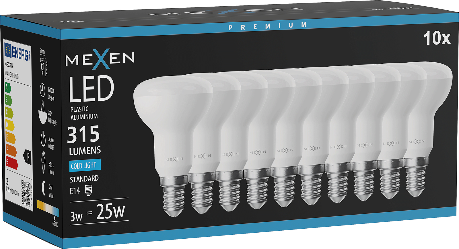 Mexen Nova 10 db LED izzó E14, R50, 3W, Hideg - 6500K, 315 lm - L103-E14-0365-01x10