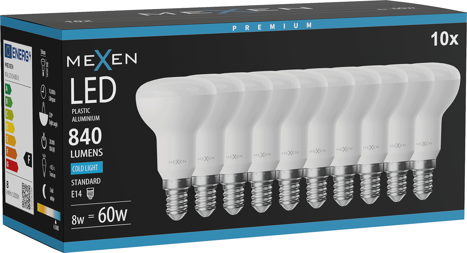 Mexen Nova 10x LED izzó E14, R50, 8W, Hideg - 6500K, 840 lm - L103-E14-0865-01x10