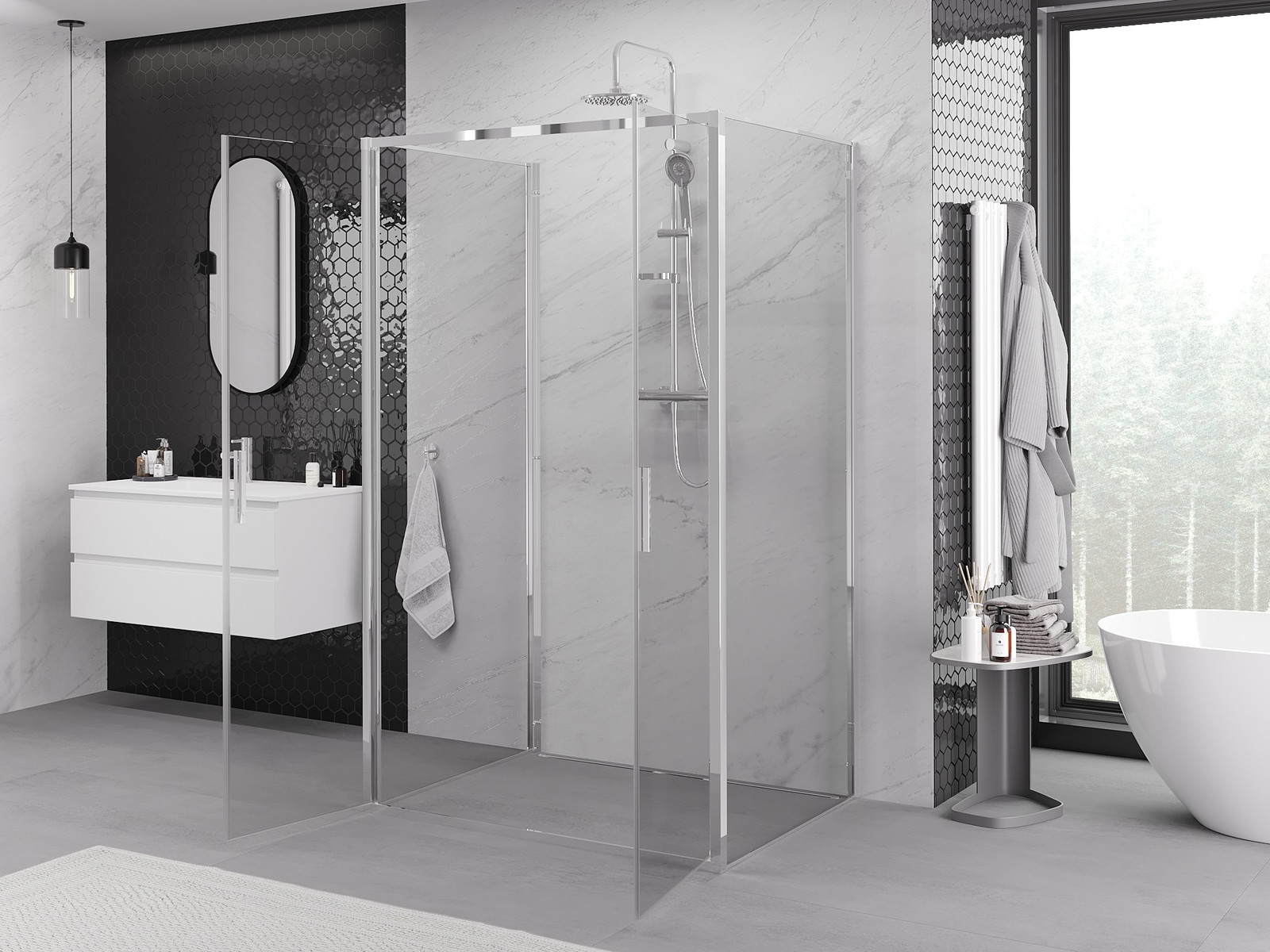 Mexen Exo-3S 3-oldalú zuhanykabin, nyitható 90 x 75 cm, átlátszó, króm - 814-090-075-01-00-3S